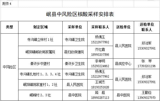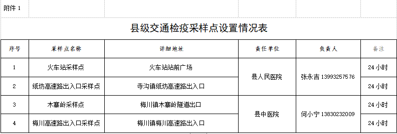 设置县级交通检疫采样点4个;岷阳镇设置常态化疫情防控核酸采样点30个,其中固定点26个,流动采样点4个;其他乡镇119个,其中固定采样点88个,流动采样点31个,设置情况详见附件。