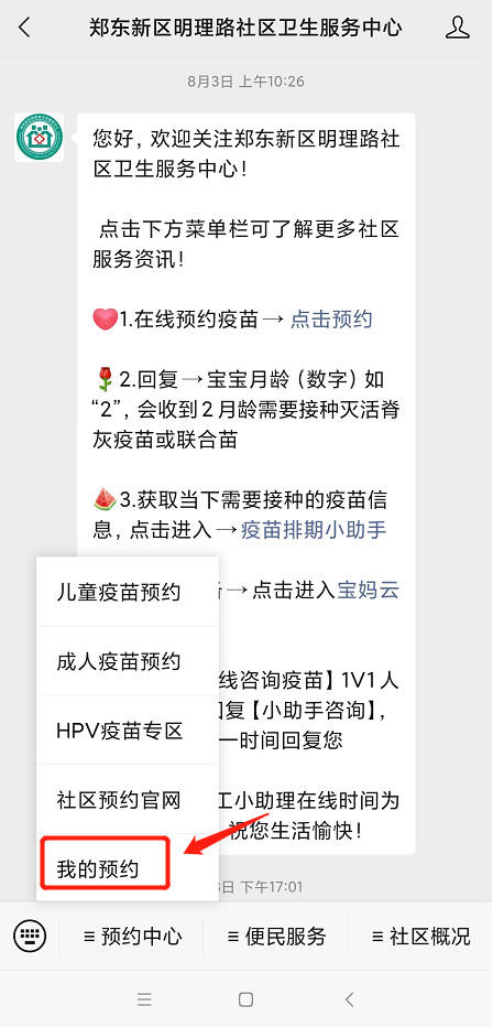 一、关注“郑东新区明理路社区卫生服务中心”公众号