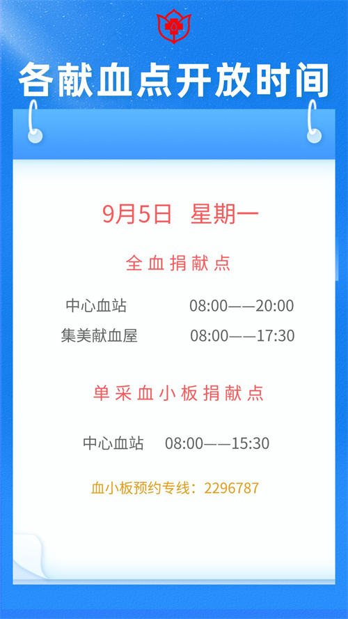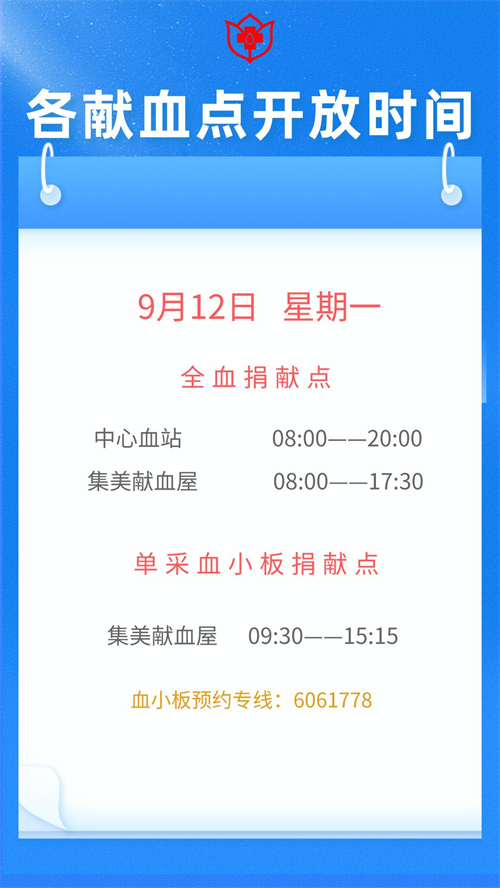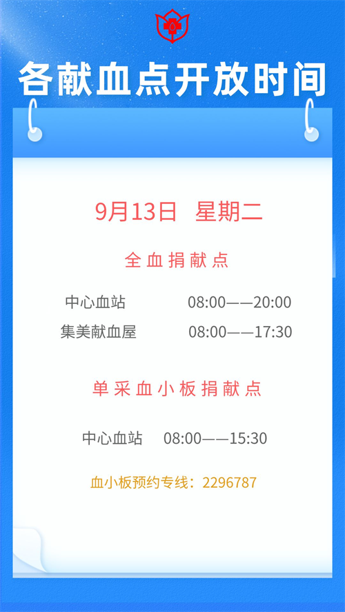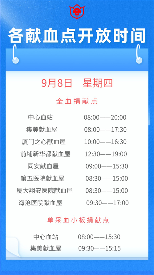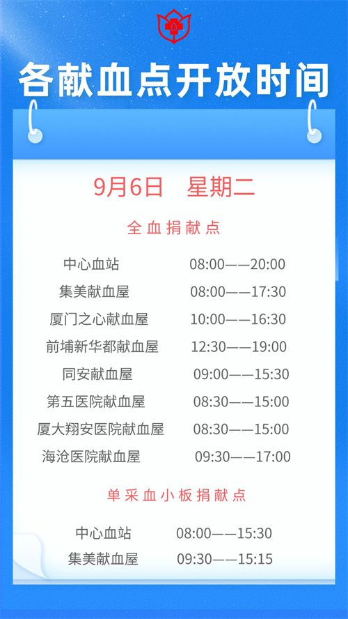 厦门9月6日-13日献血指引 厦门血液中心献血时间