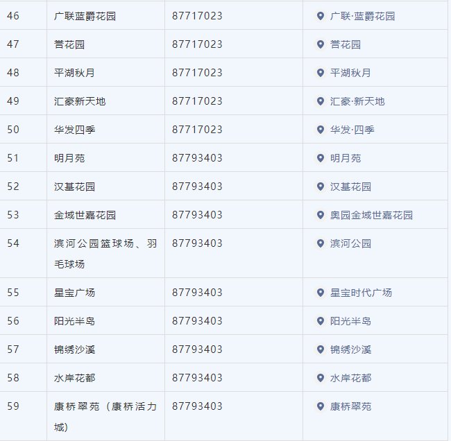 各村(社区)固定采样点和在部分企业设置的临时采样点见下表。