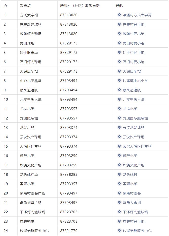 三、采样点设置:详见下方核酸采样点地址列表,请广大市民就近选择检测点。