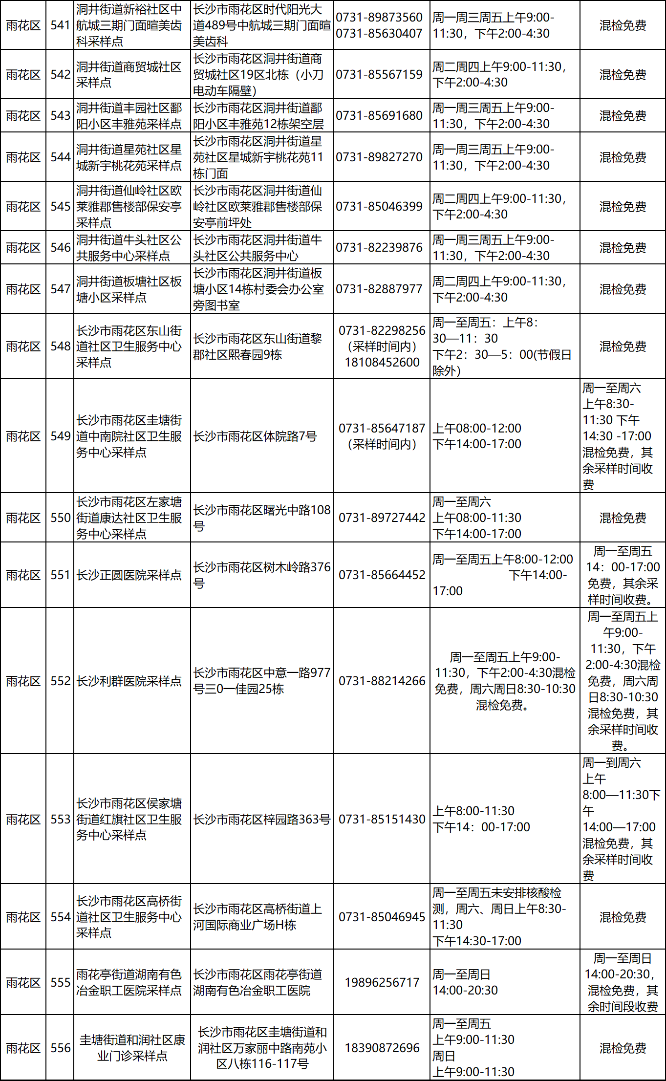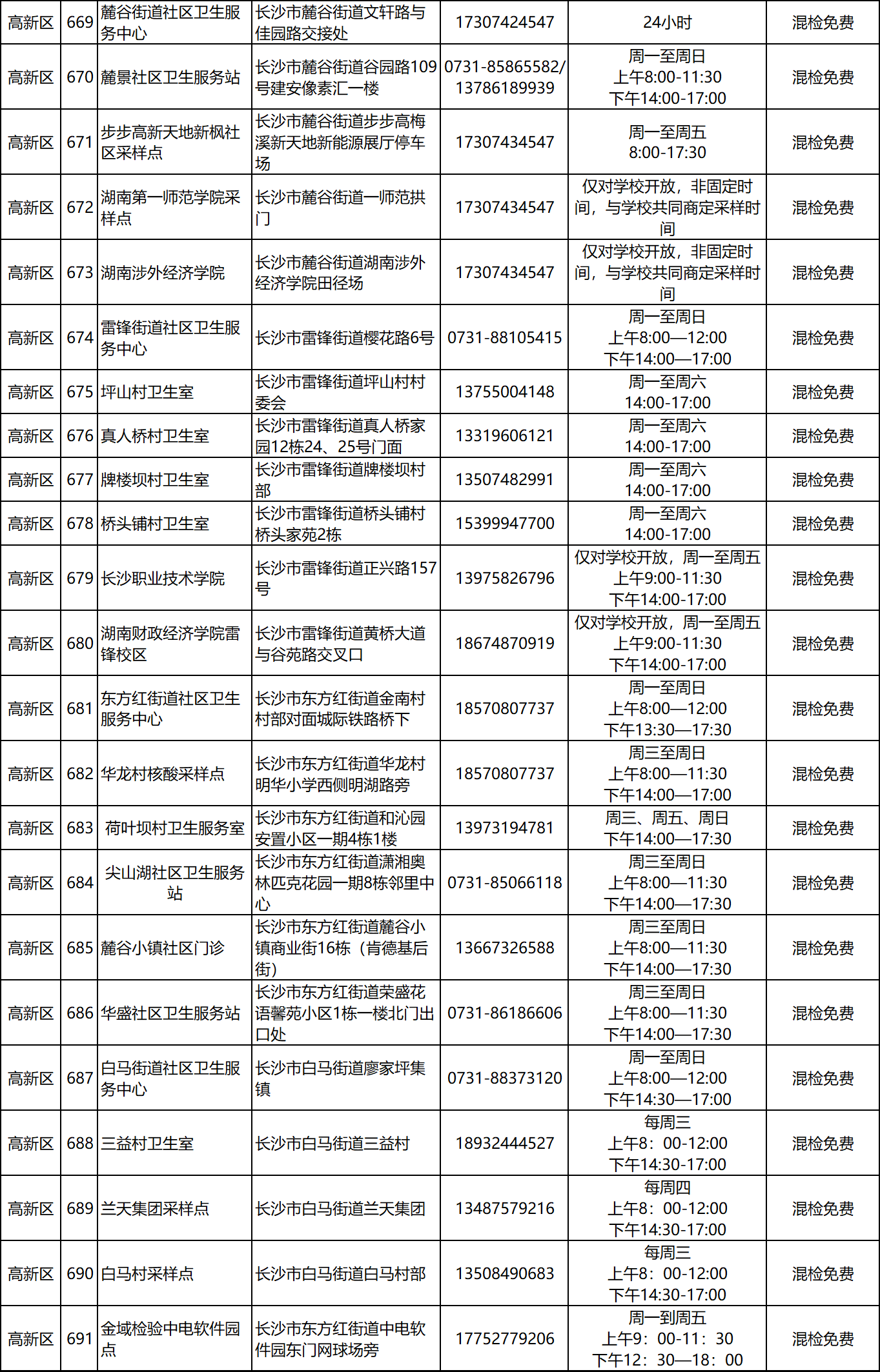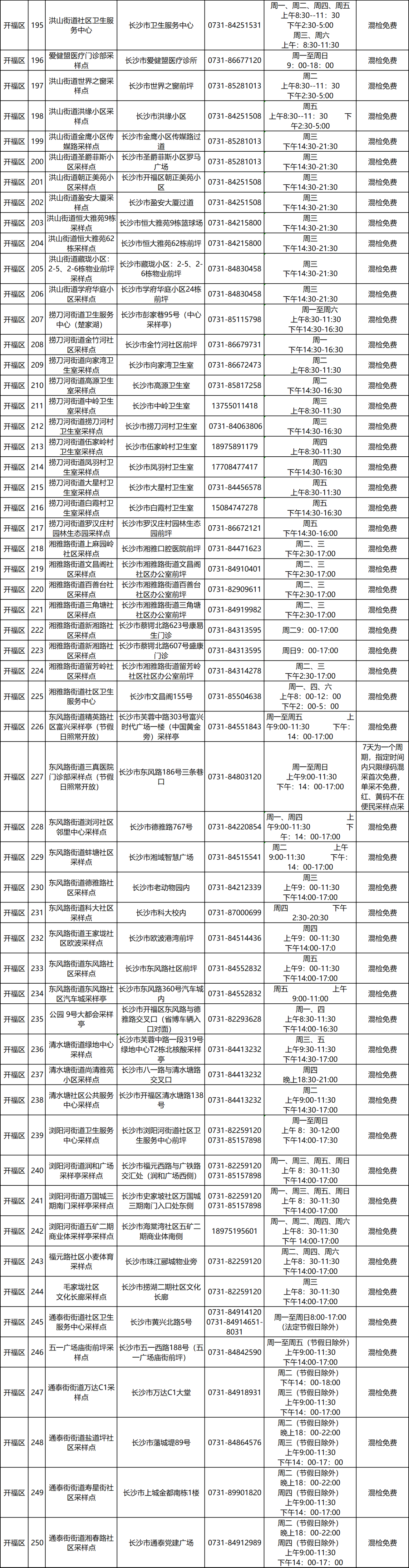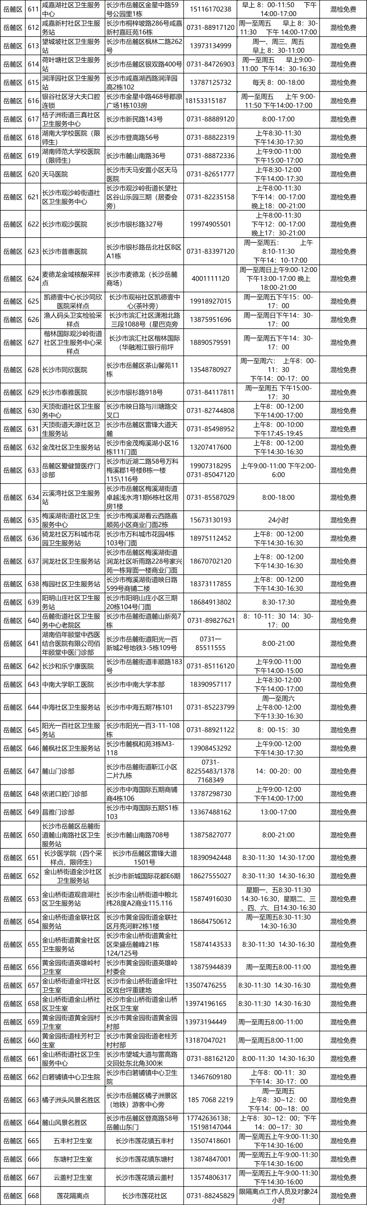 长沙市便民免费核酸采样点信息汇总表(最新)