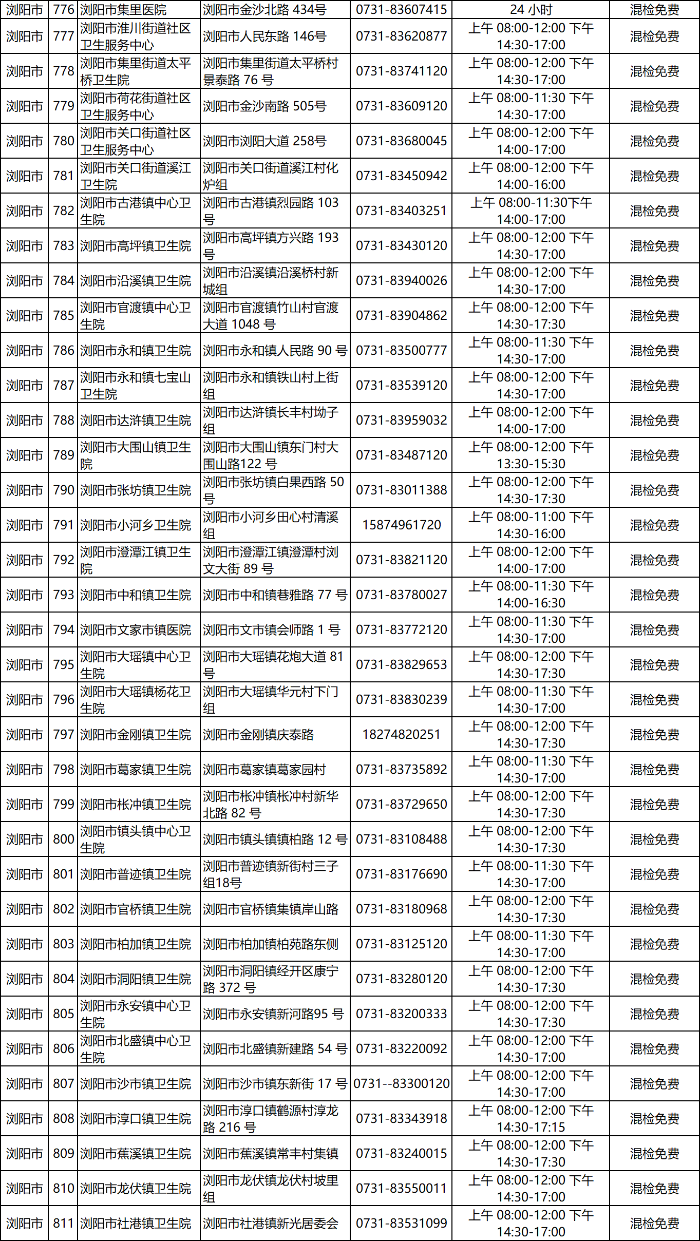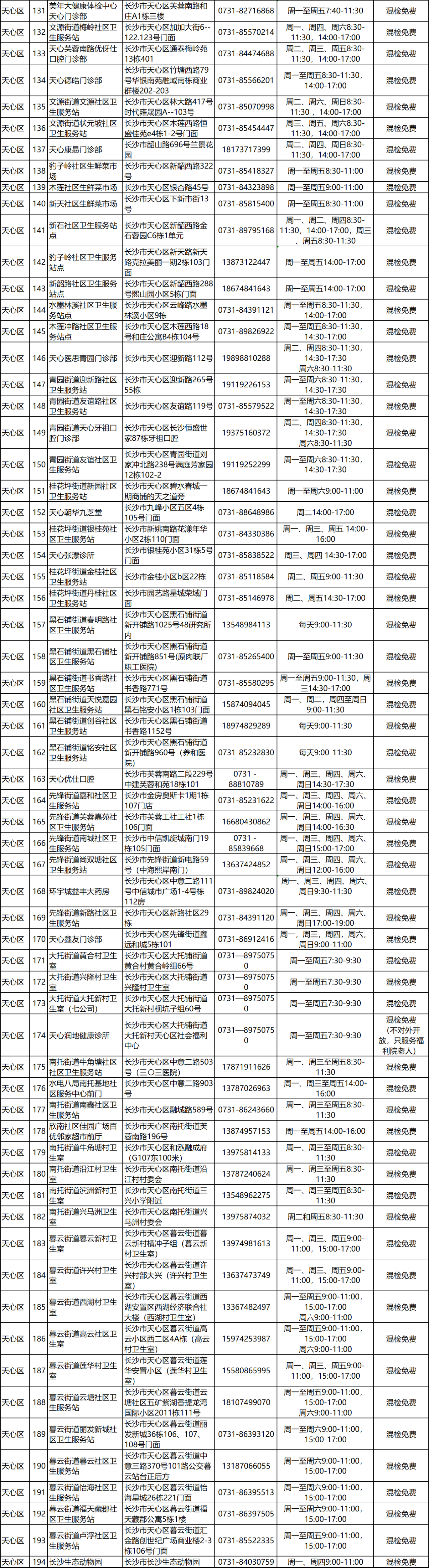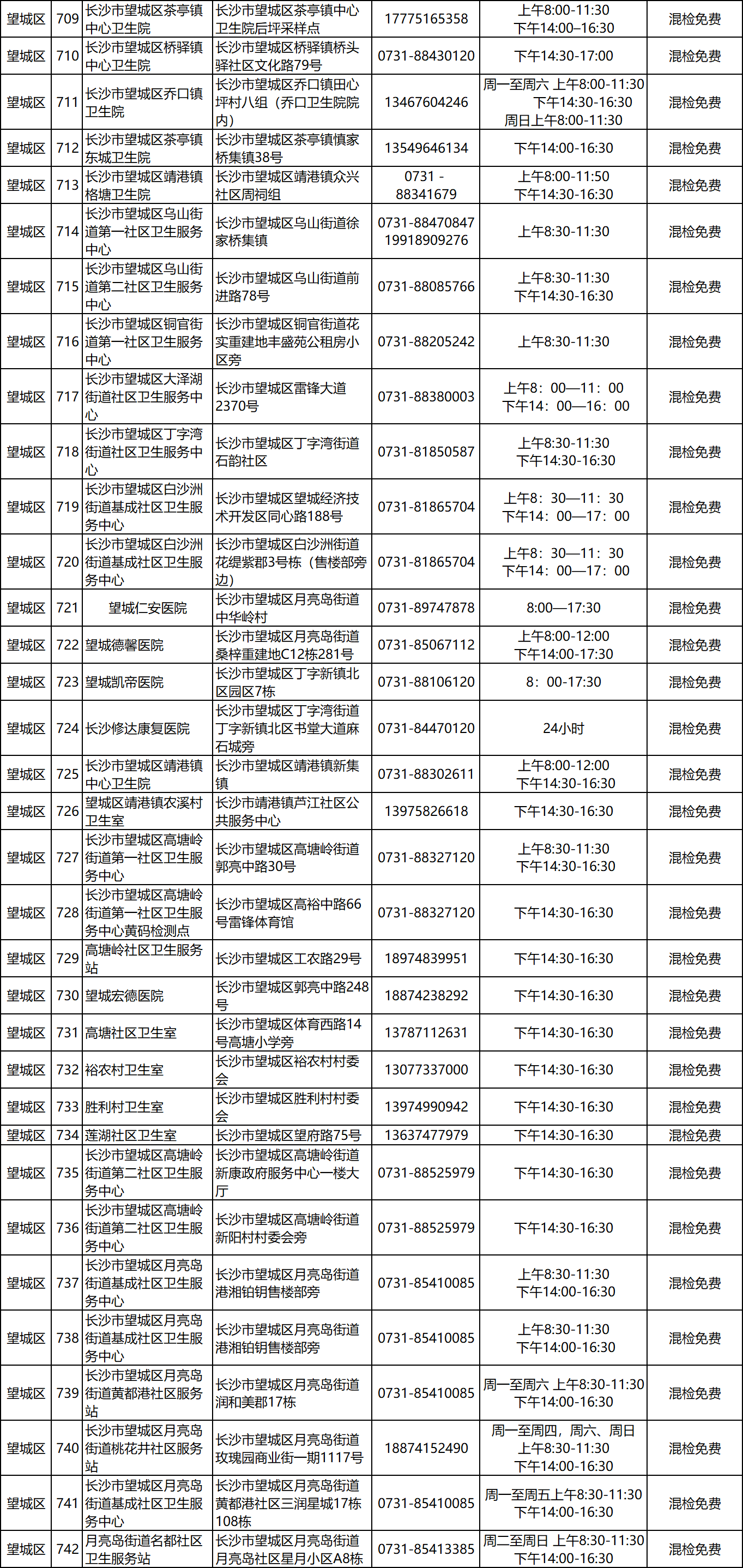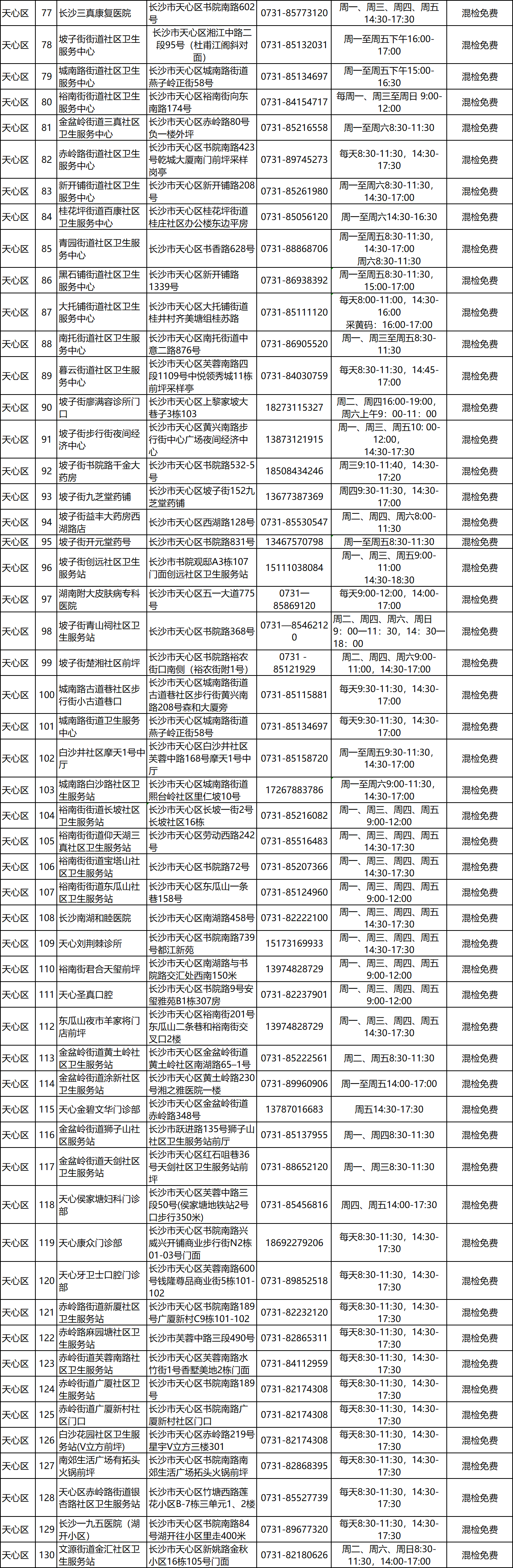 长沙市便民免费核酸采样点信息汇总表(最新)