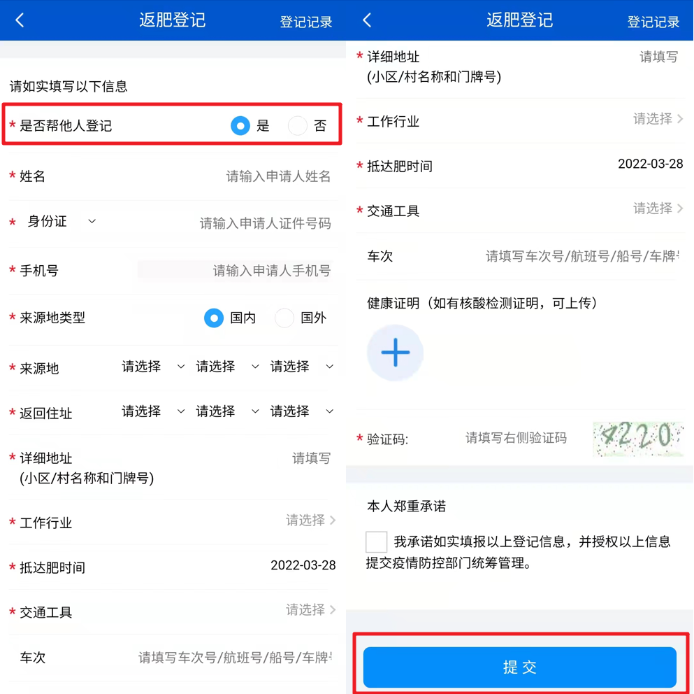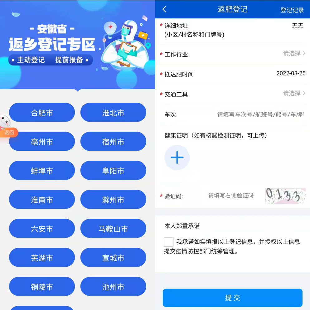 在服务页面中选择你要返回的地区,按照要求填写相关信息和上传健康证明后,点击“提交”即可。