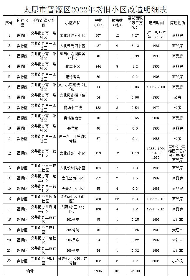太原市晋源区2022年老旧小区改造计划(太原晋源区老旧小区改造名单)