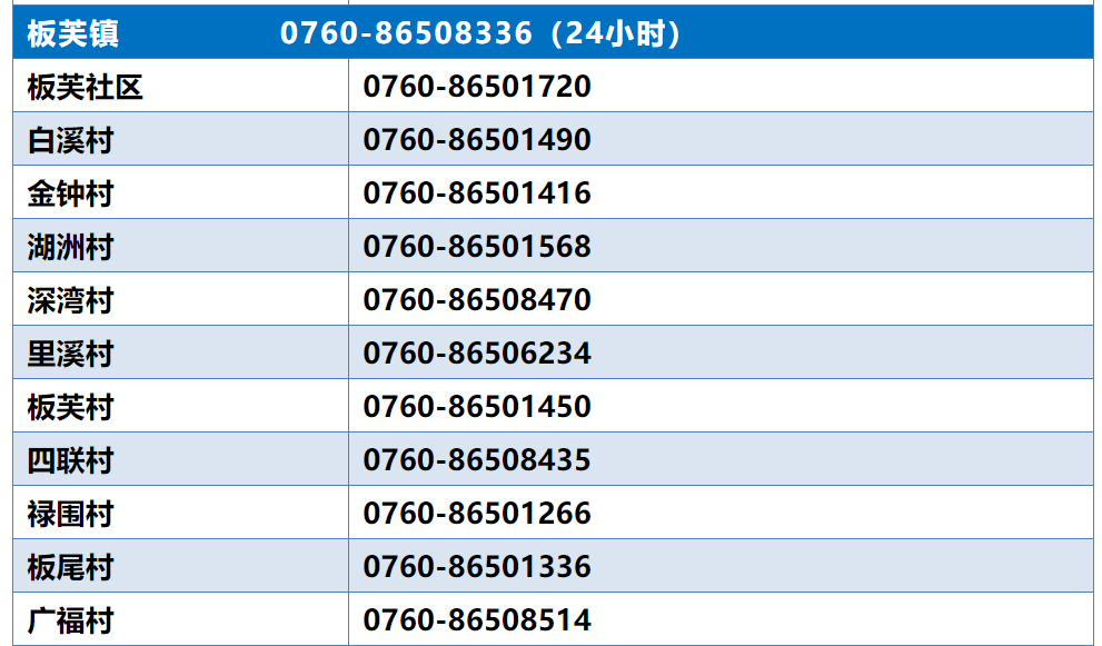 中山板芙镇报备电话
