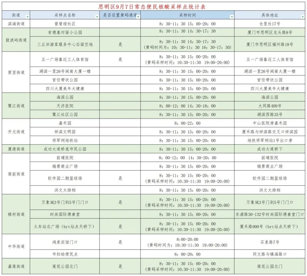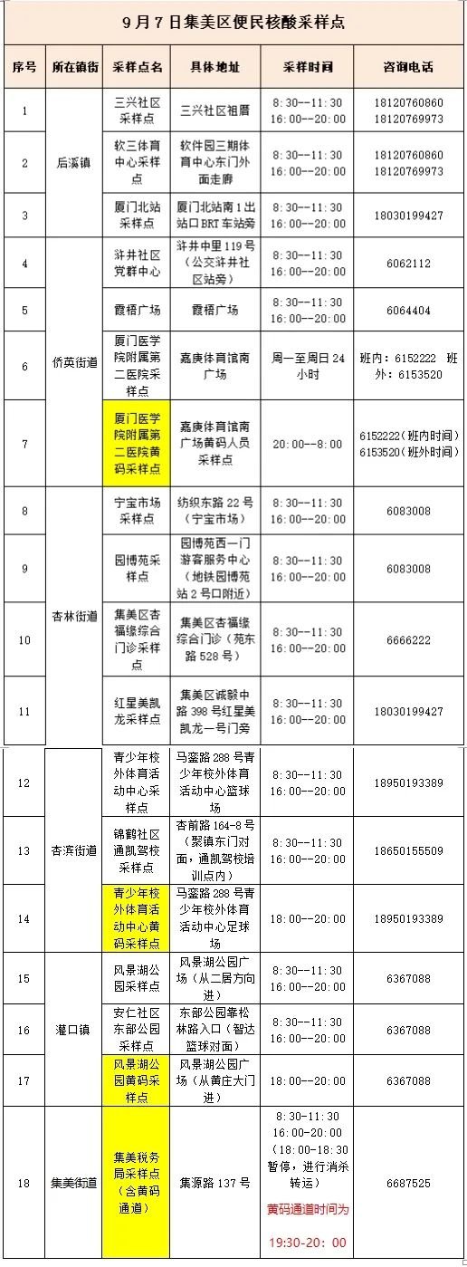 2022年9月7日厦门核酸检测点汇总 9月17日厦门核酸检测点