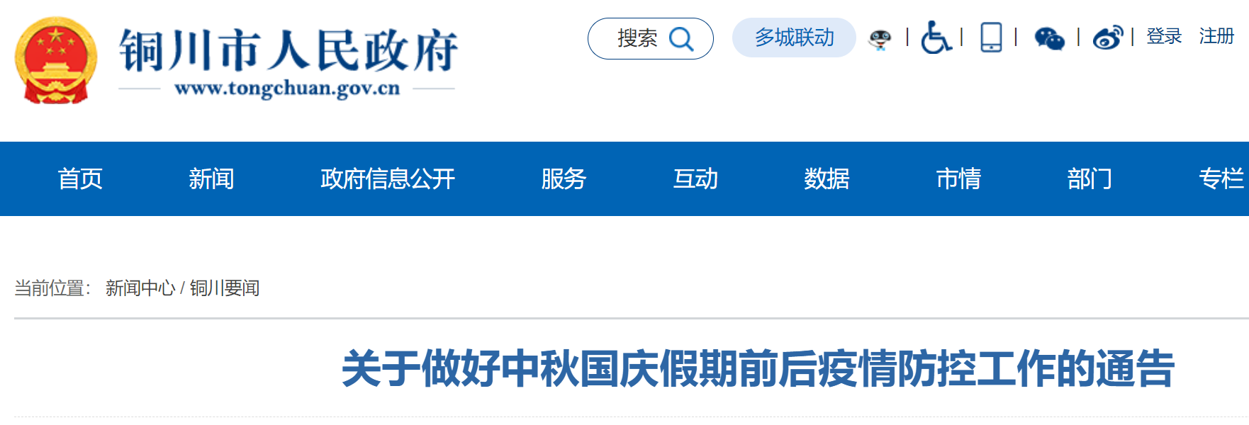 铜川关于做好中秋国庆假期前后疫情防控工作通告