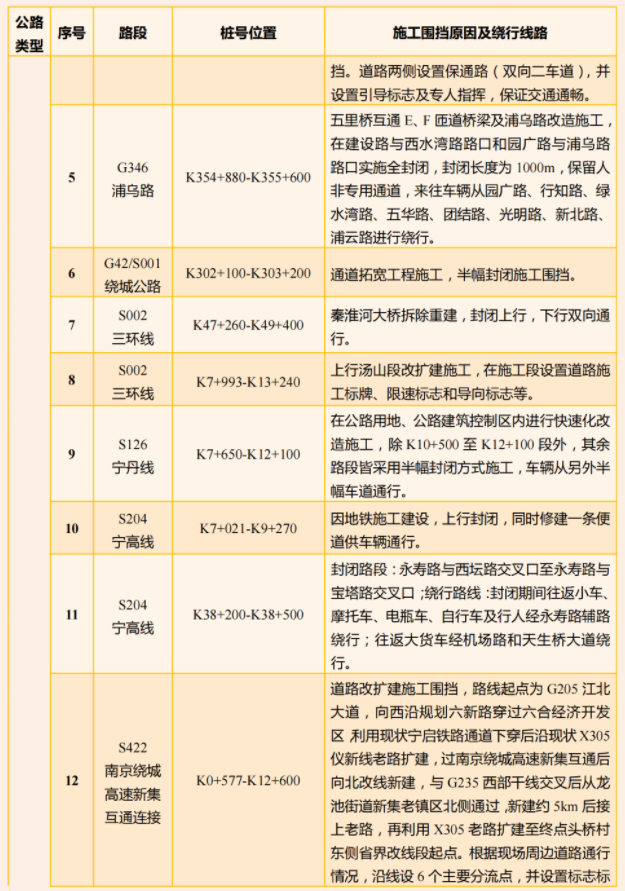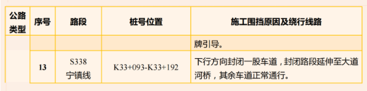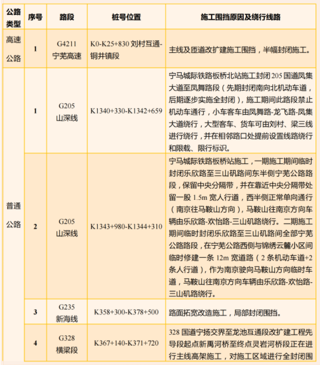 施工路段节点:中秋假期,全市共有1处高速公路、13处普通国省道路段节点仍处于施工围挡状态,出行时请注意现场交通标志提示!