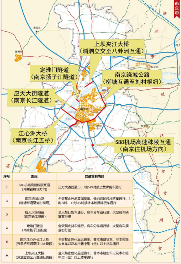 部分路段车辆限行:中秋假期,我市高速公路对危化品运输车、大件运输车全路网、全时段禁行,部分重要路段节点,实施交通管制政策。