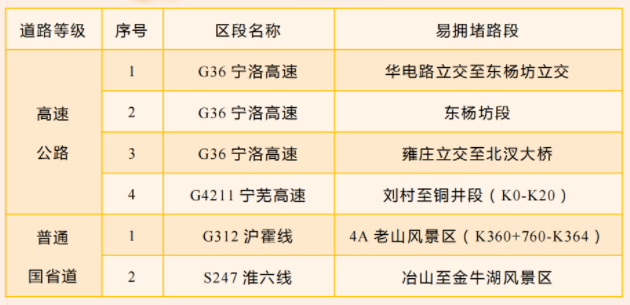 拥堵预警:预计出行高峰时段部分路段、节点可能会出现短时车多缓行的状况,建议广大公众提前规划行程,充分考虑拥堵可能造成的延误。易拥堵路段如下: