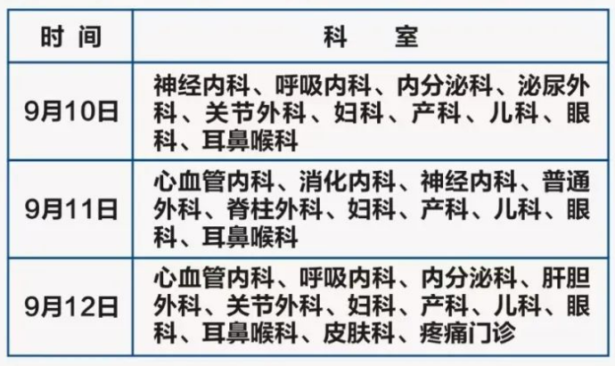 西安航天总医院2022年中秋节假日门诊出诊安排表: