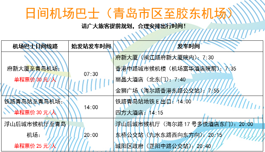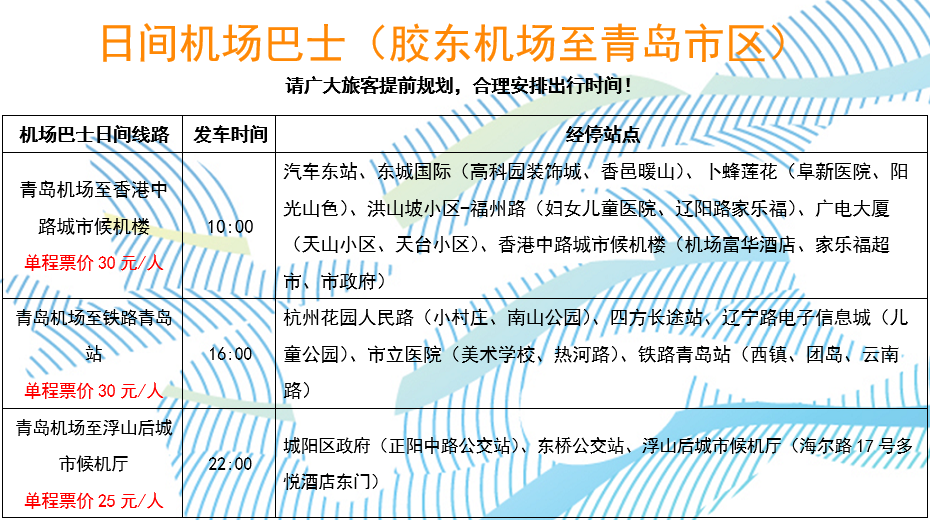 青岛机场巴士日间线路最新时刻表