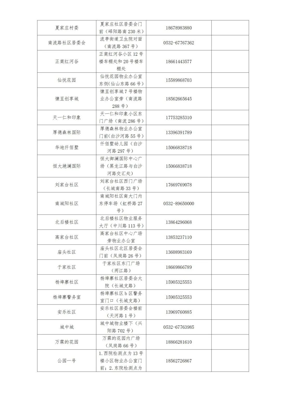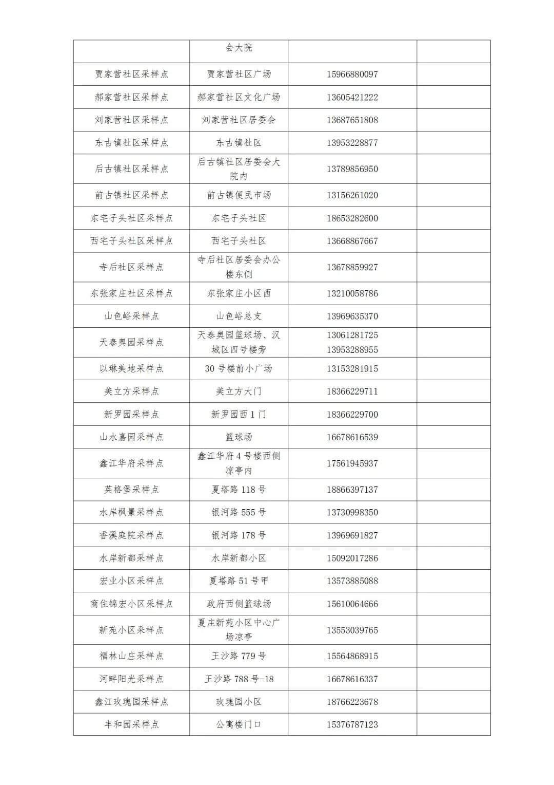 各街道、高新区防指办、高新便民服务中心就近设置采样点(采样点信息附后),请关注区及各街道、高新区防指办、高新便民服务中心发布的信息。