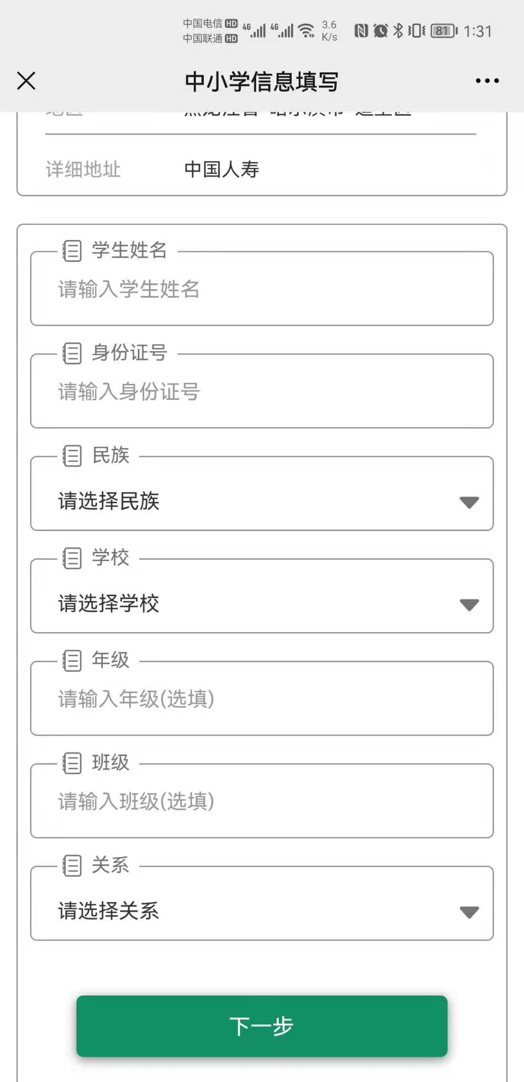 填写家长信息