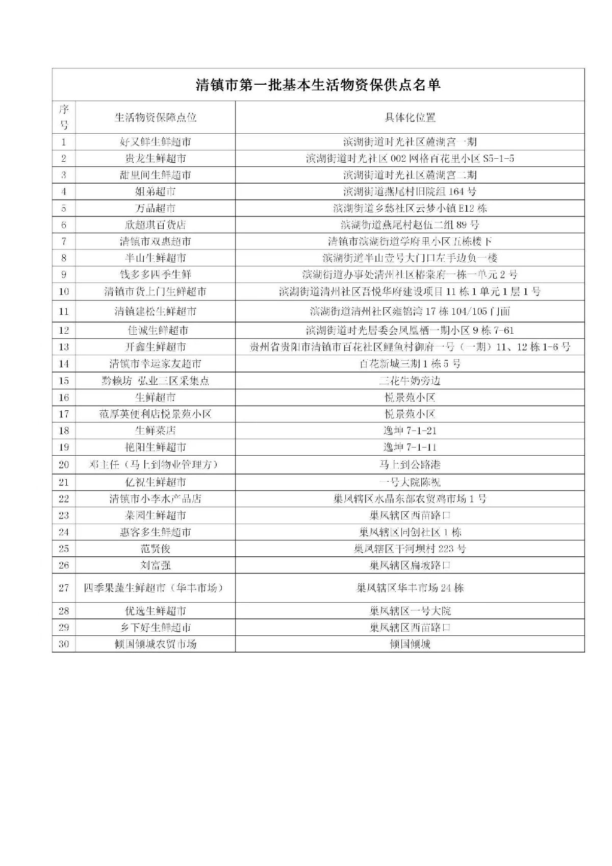 二、清镇市第二批基本生活物资无接触式保供点名单(含送水电话)
