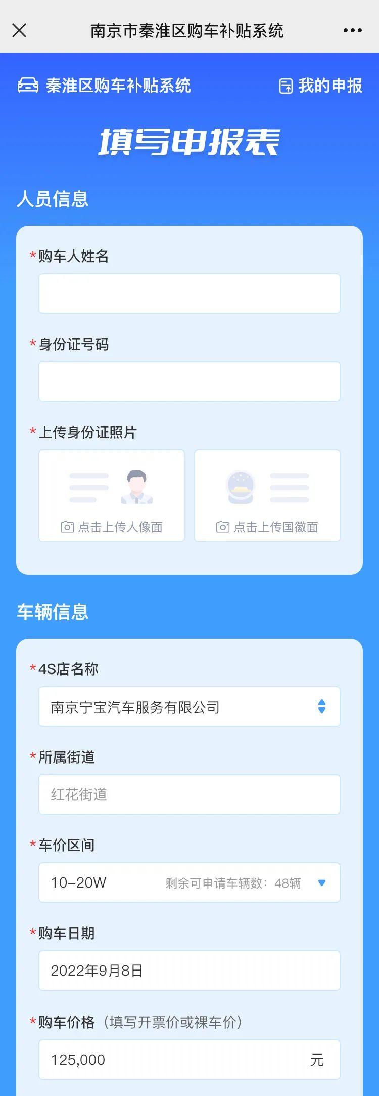 为加快拉动汽车消费,繁荣区域消费市场,秦淮区出台购车补贴政策。购车补贴平台2022年9月8日09:00开放,请购车人注册登录系统,按页面提示提交材料,后期由后台审核发放补贴至申请人银行卡账户。