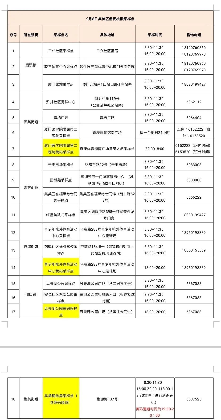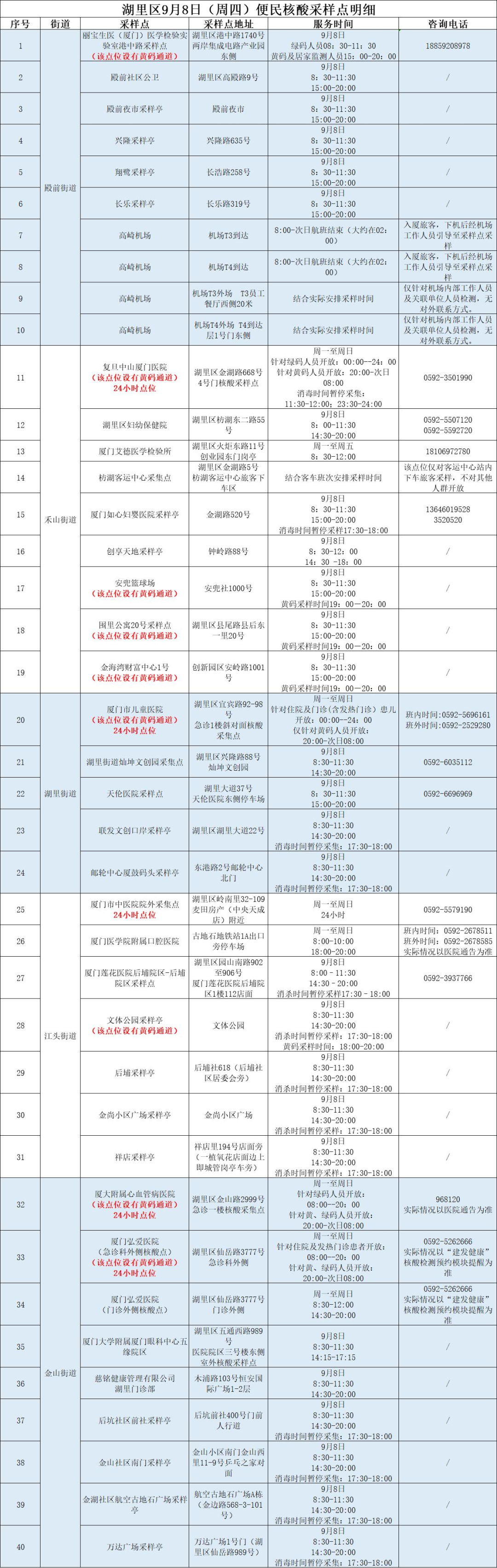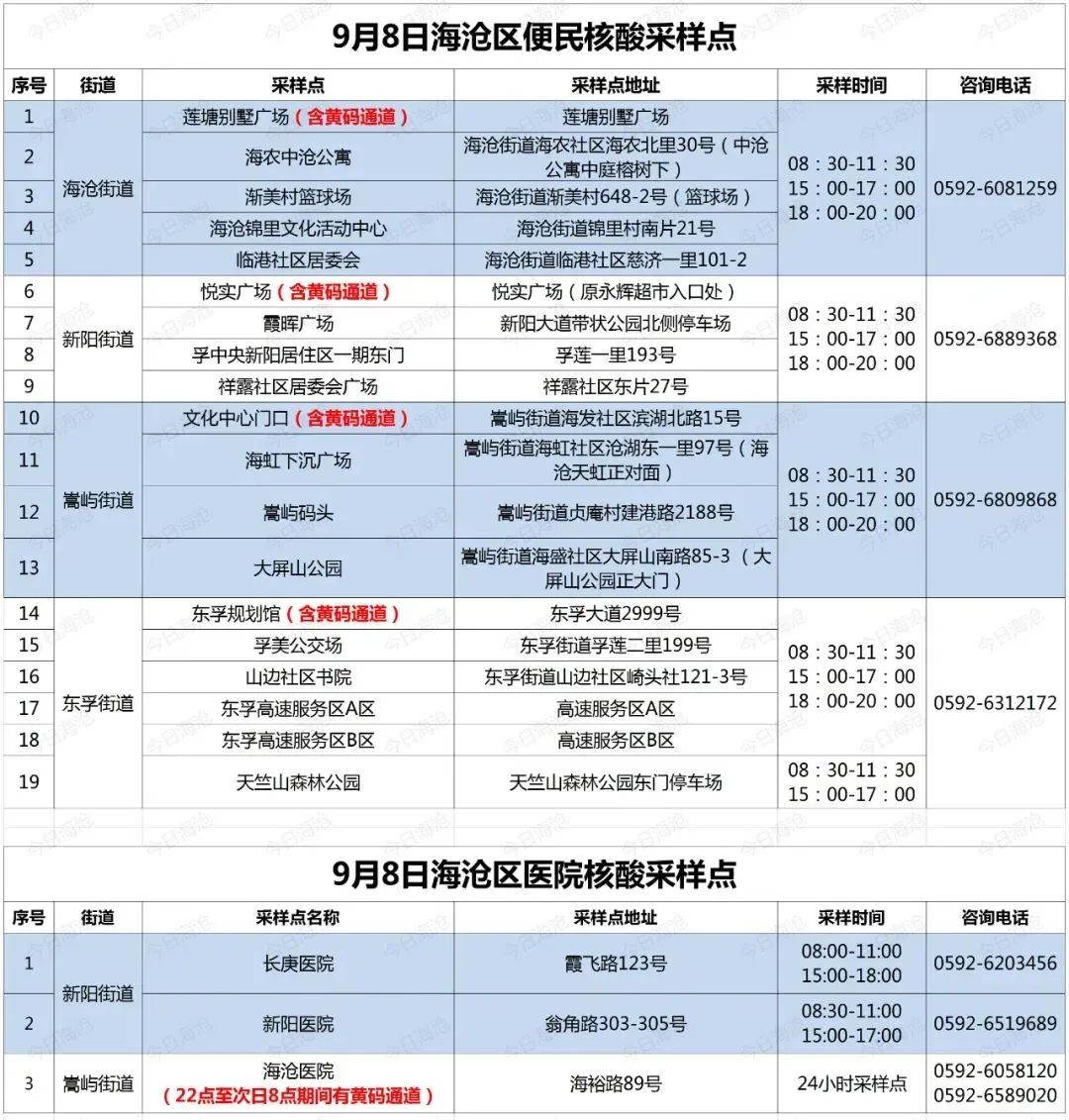 2022年9月8日厦门免费核酸检测点时间+地点