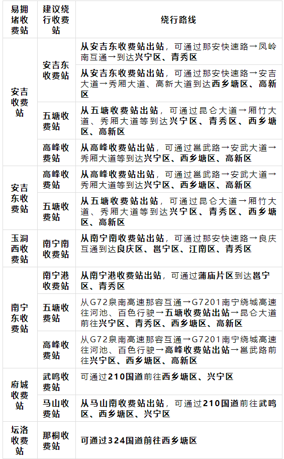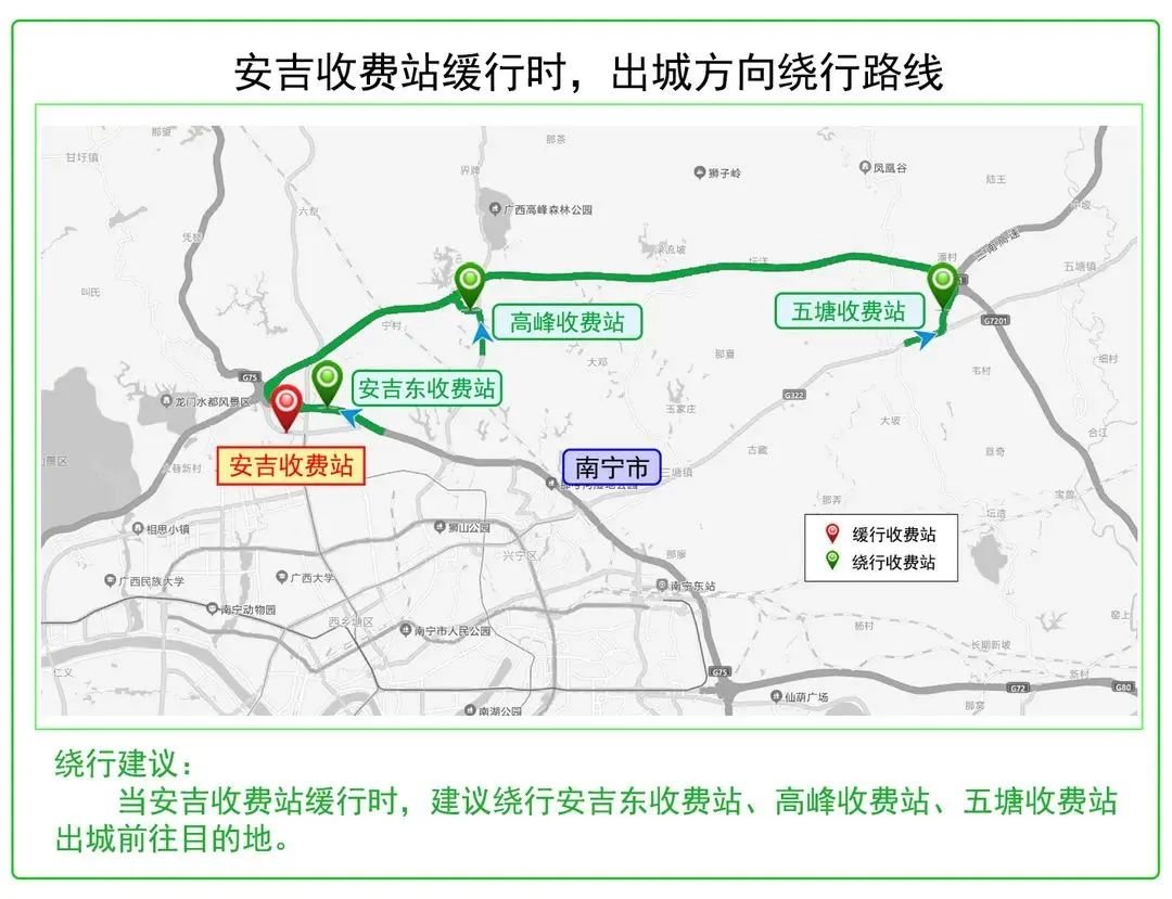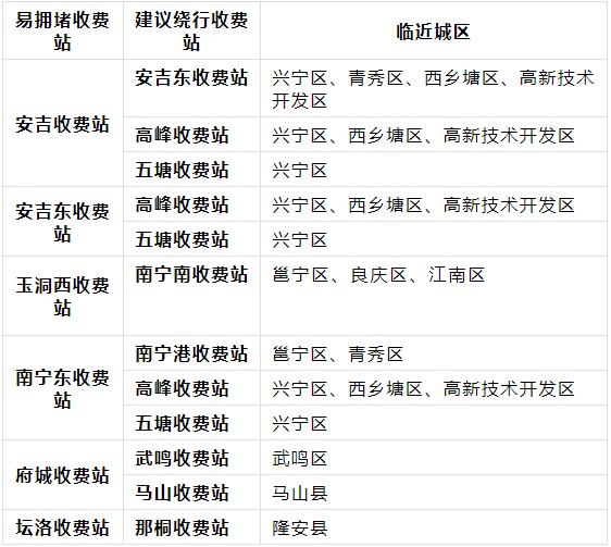 (二)G7201南宁绕城高速安吉收费站、安吉东收费站、沙井收费站、玉洞西收费站、高峰收费站、五塘收费站。