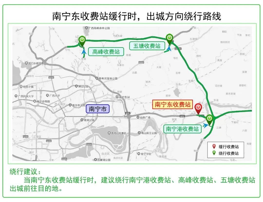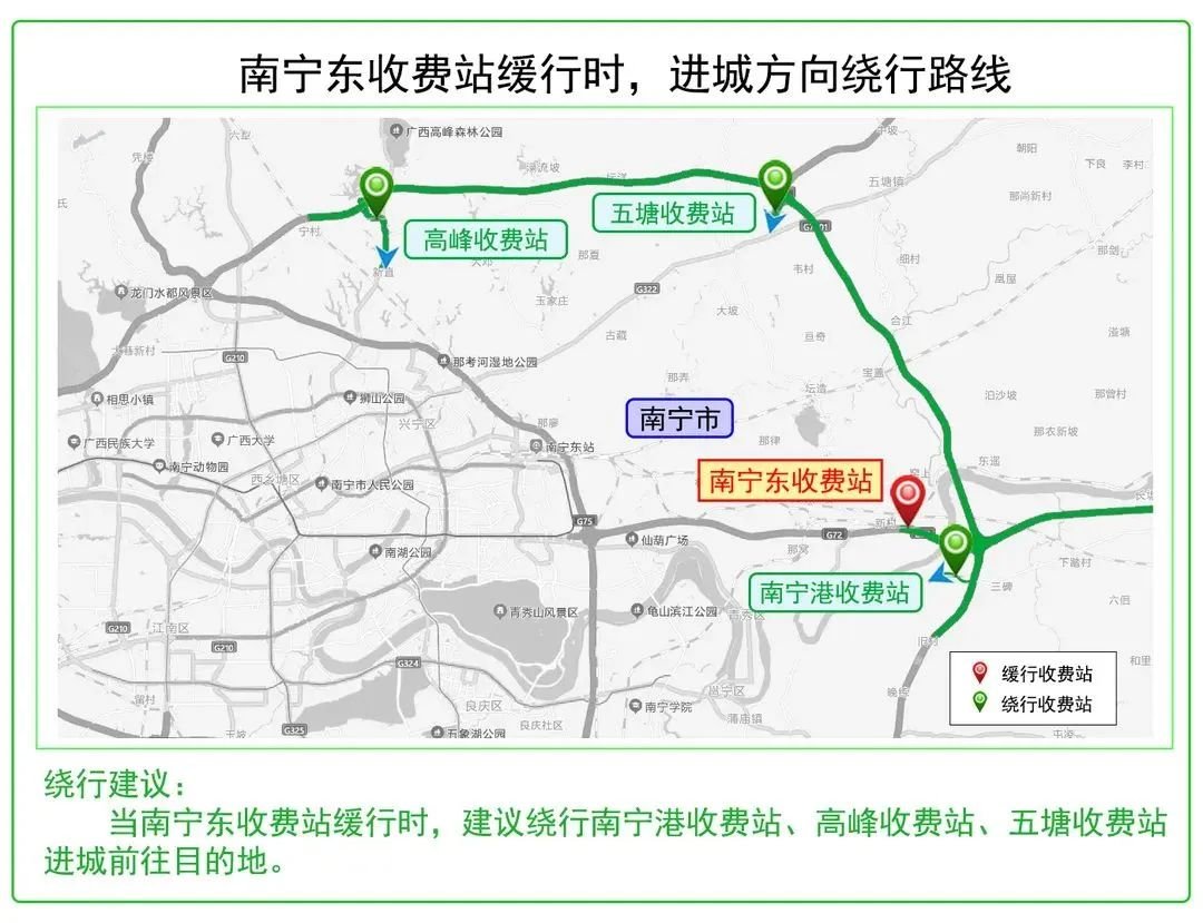 出收费站后请车友们提前打开健康码、行程码做好检查准备,按照工作人员指示配合检查。建议进入南宁市区的司乘朋友,提前查询行经收费站的通行情况,合理选择收费站进城,如果遇到因防疫检查造成车辆缓行,请车友们耐心排队按次序通行。
