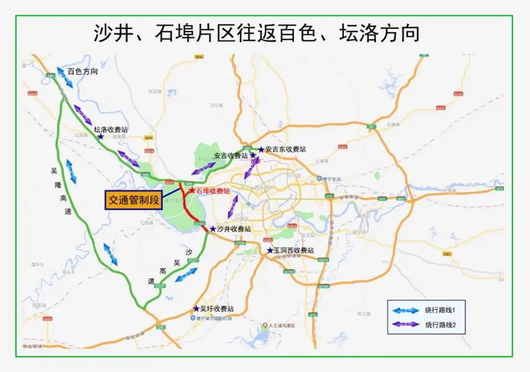 一、南宁绕城高速沙井至石埠(双向)路段以及石埠收费站封闭施工,过往车辆请绕行。