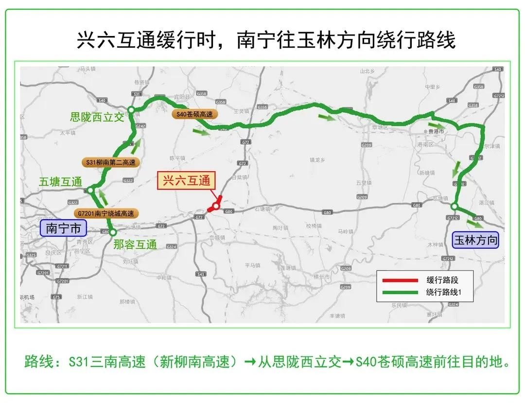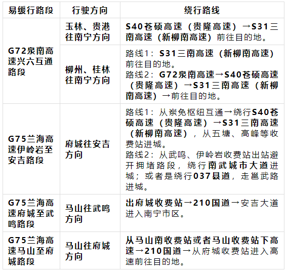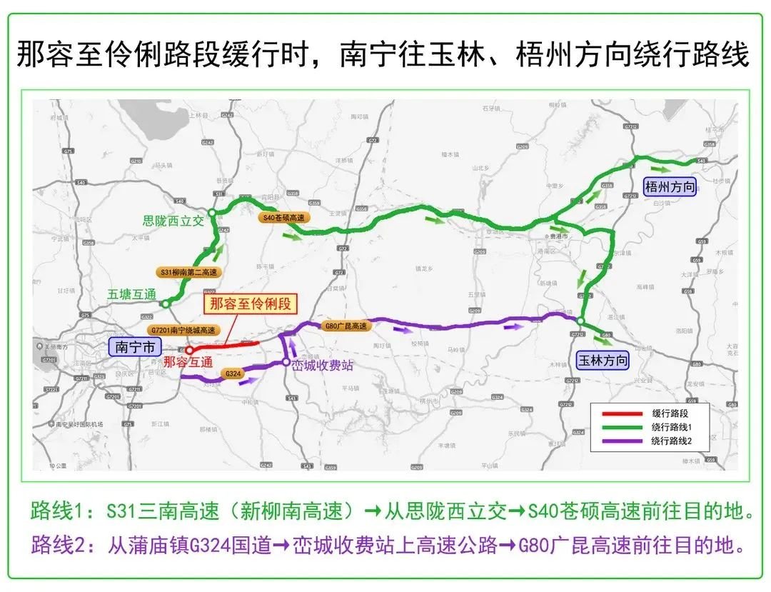S31三南高速k326+640-k325+700路段南宁往柳州方向半幅封闭,柳州往南宁方向半幅双向通行。