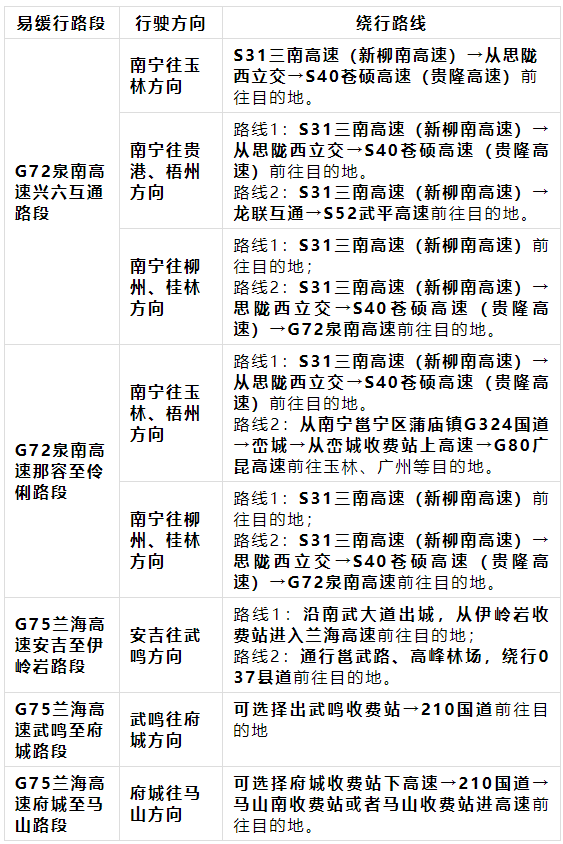 (二)G75兰海高速安吉至伊岭岩路段、武鸣至府城路段、乔利互通至府城路段。