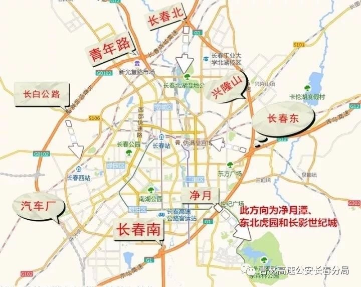 节日期间,流量相对集中的站口为长春南、长春北、长春东、净月等站口易产生拥堵,其中长春南、净月为重点站口,因而其流量将明显上升。