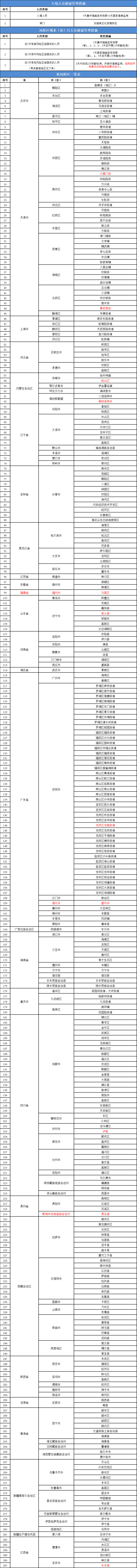 二、来自以下地区的来(返)昌人员严格按照《新型冠状病毒肺炎防控方案(第九版)》要求落实管控措施,指挥部另有要求的按指挥部要求执行。