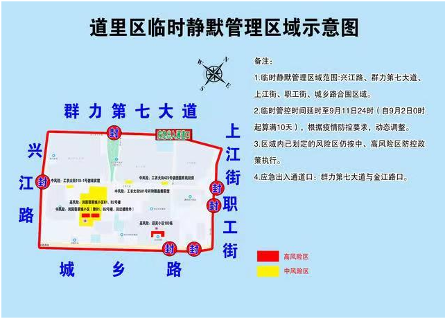 哈尔滨道里区临时性静默管理区域+时间调整通知