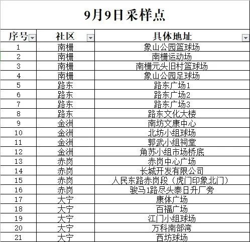 以社区为单位设置固定采样点(详见下表,具体以社区现场公布为准),请选择就近采样点检测。