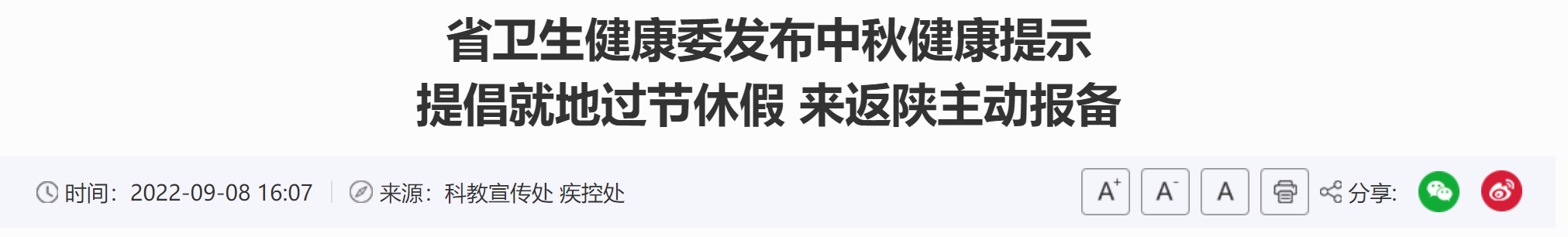 陕西省卫生健康委员会9月8日发布中秋健康提示: