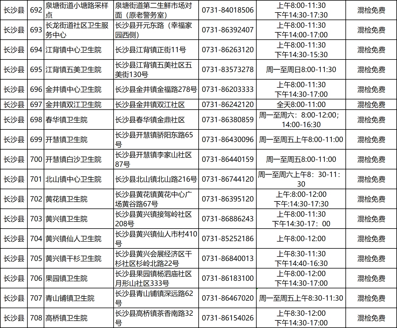 长沙县常态化便民免费核酸采样点汇总(更新中)