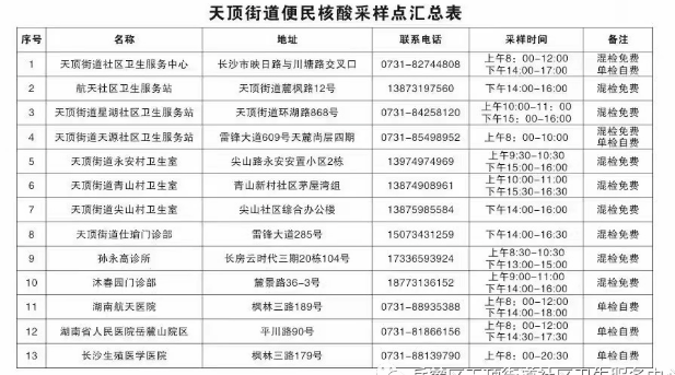 长沙岳麓区天顶街道关于常态化便民核酸检测的通告