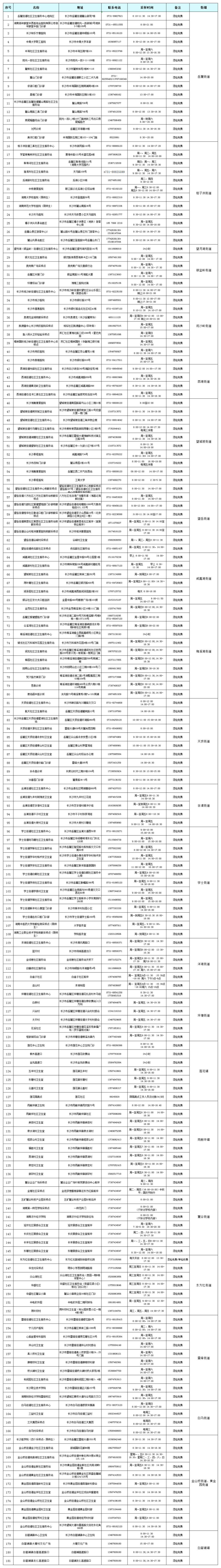 湘江新区居民免费核酸采样点信息汇总表