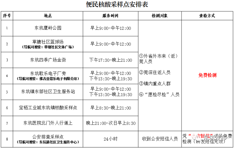 4、有“十大症状”的人员不要参加核酸检测,请提前报告所在村(社区)和单位,做好个人防护,及时前往东坑医院发热门诊就诊。