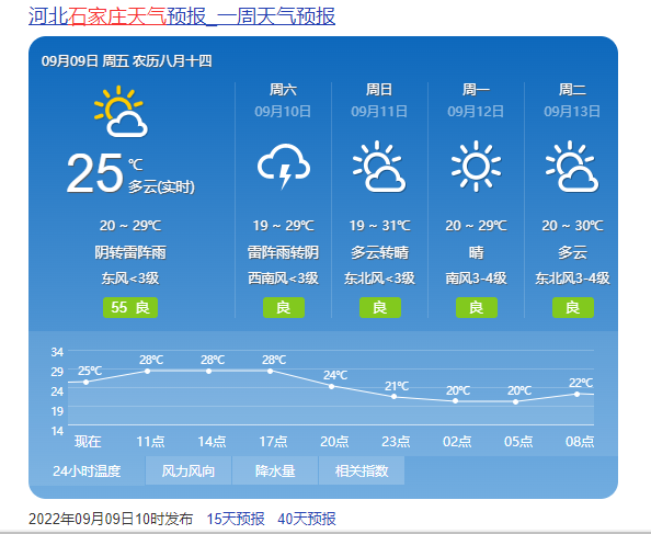 2022石家庄中秋节天气预报(2022石家庄中秋节天气预报实况)