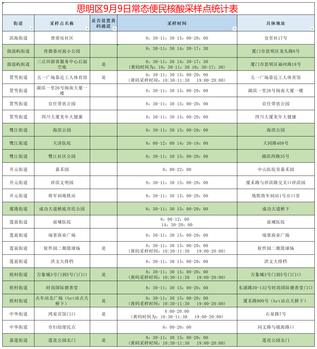 2022年9月9日厦门核酸采样点汇总 厦门核酸采样点分布