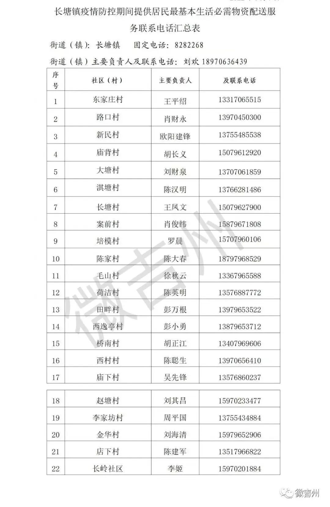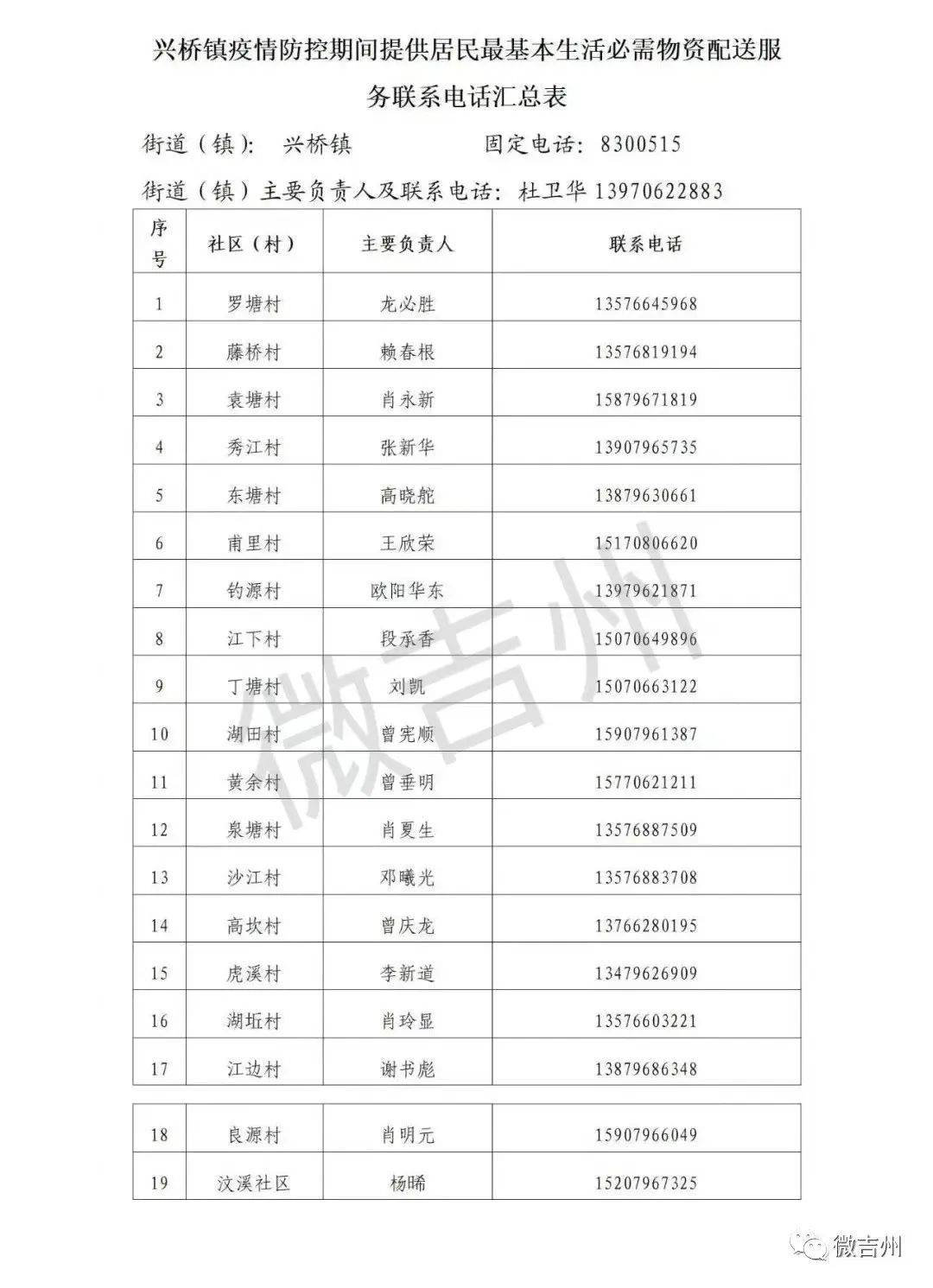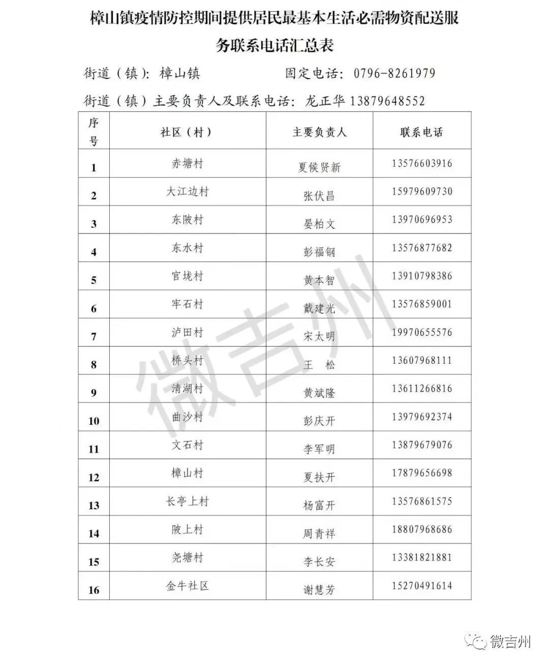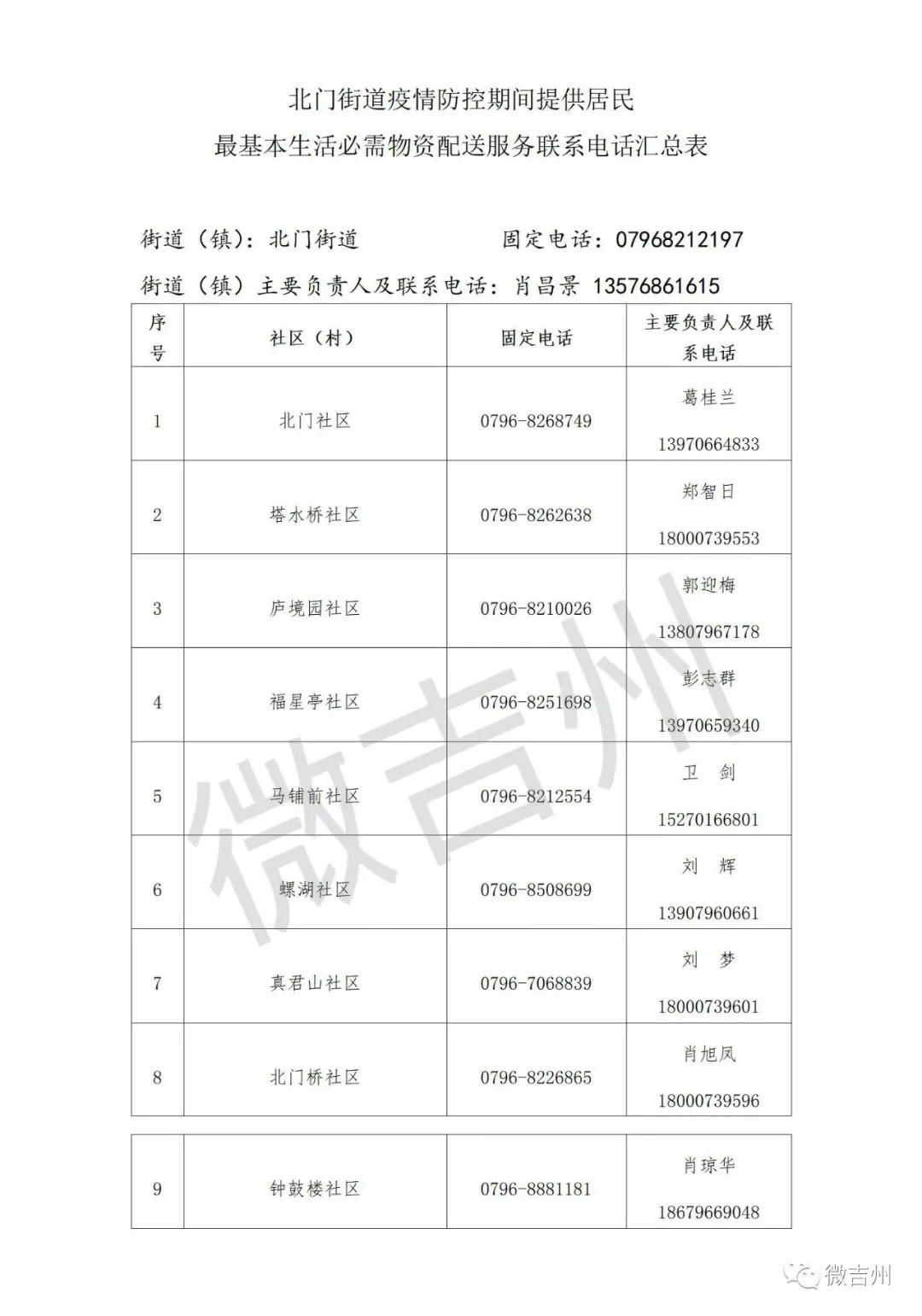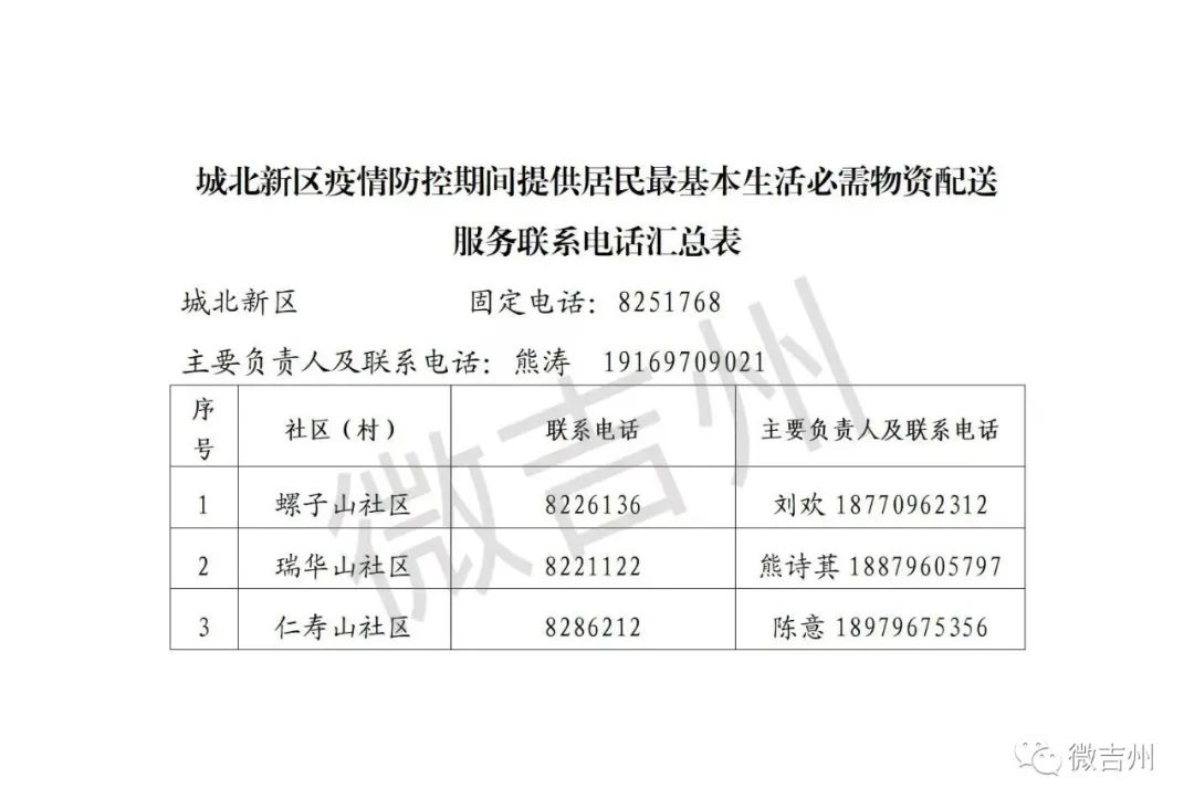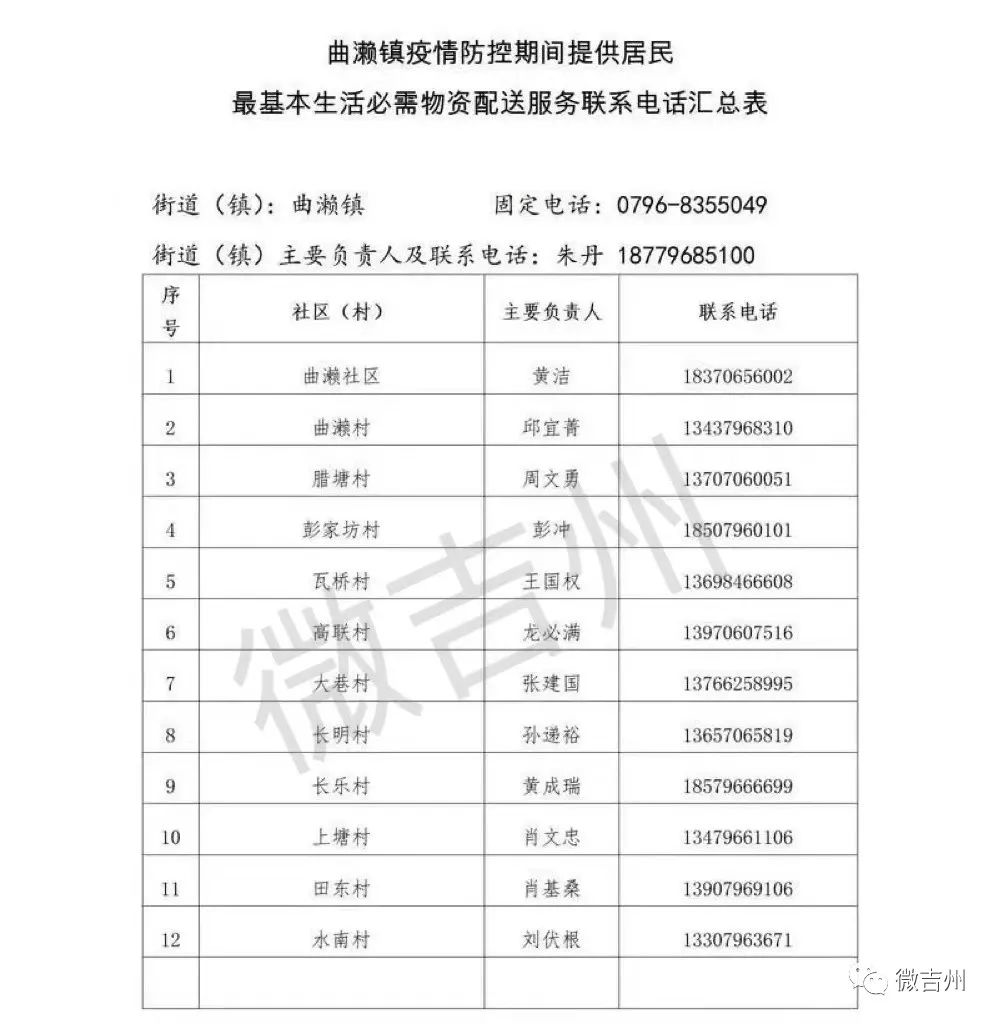 吉州区各镇街疫情防控期间居民基本生活必需品配送服务电话