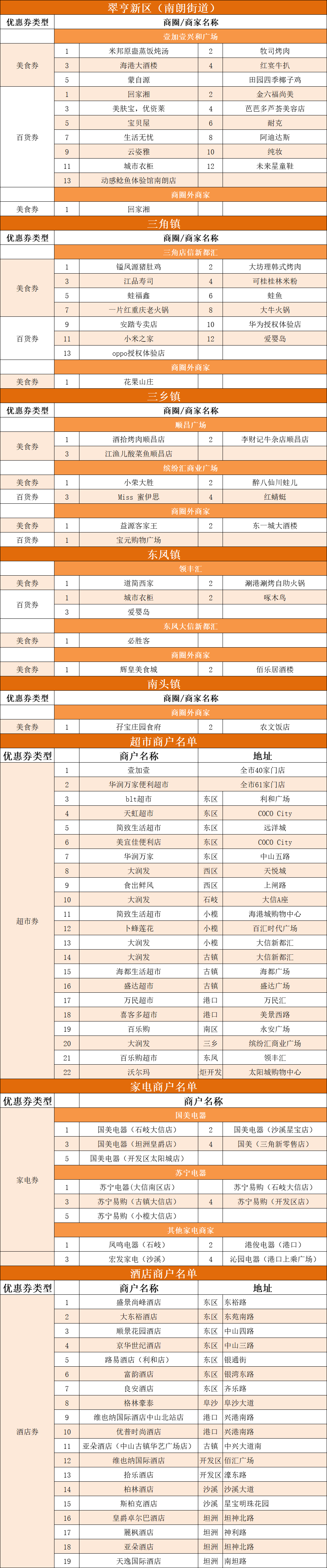 中山惠民消费券哪些商家可以用 中山文旅消费券可用商家