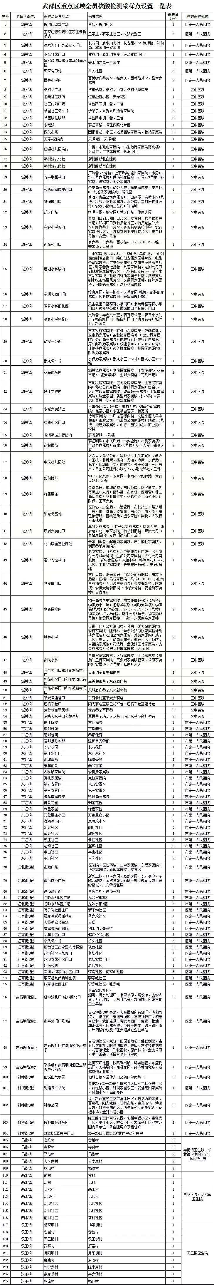 附:武都区重点区域全员核酸检测采样点设置一览表
