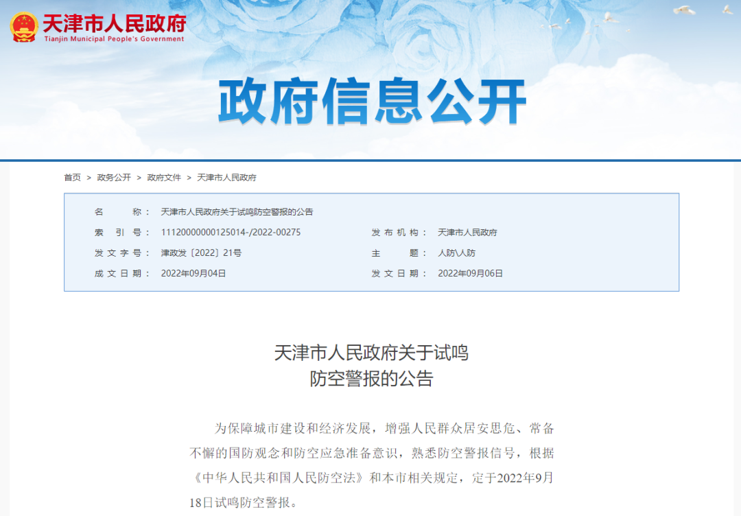 2022天津防空警报最新消息 2022天津防空警报最新消息今天
