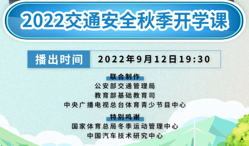 为守护中小学生、幼儿园孩子们平安健康成长,公安部交通管理局、教育部基础教育司、中央广播电视总台体育青少节目中心联合制作了一堂“知危险 会避险”2022交通安全秋季开学课,即将以在线直播的方式登场哦!