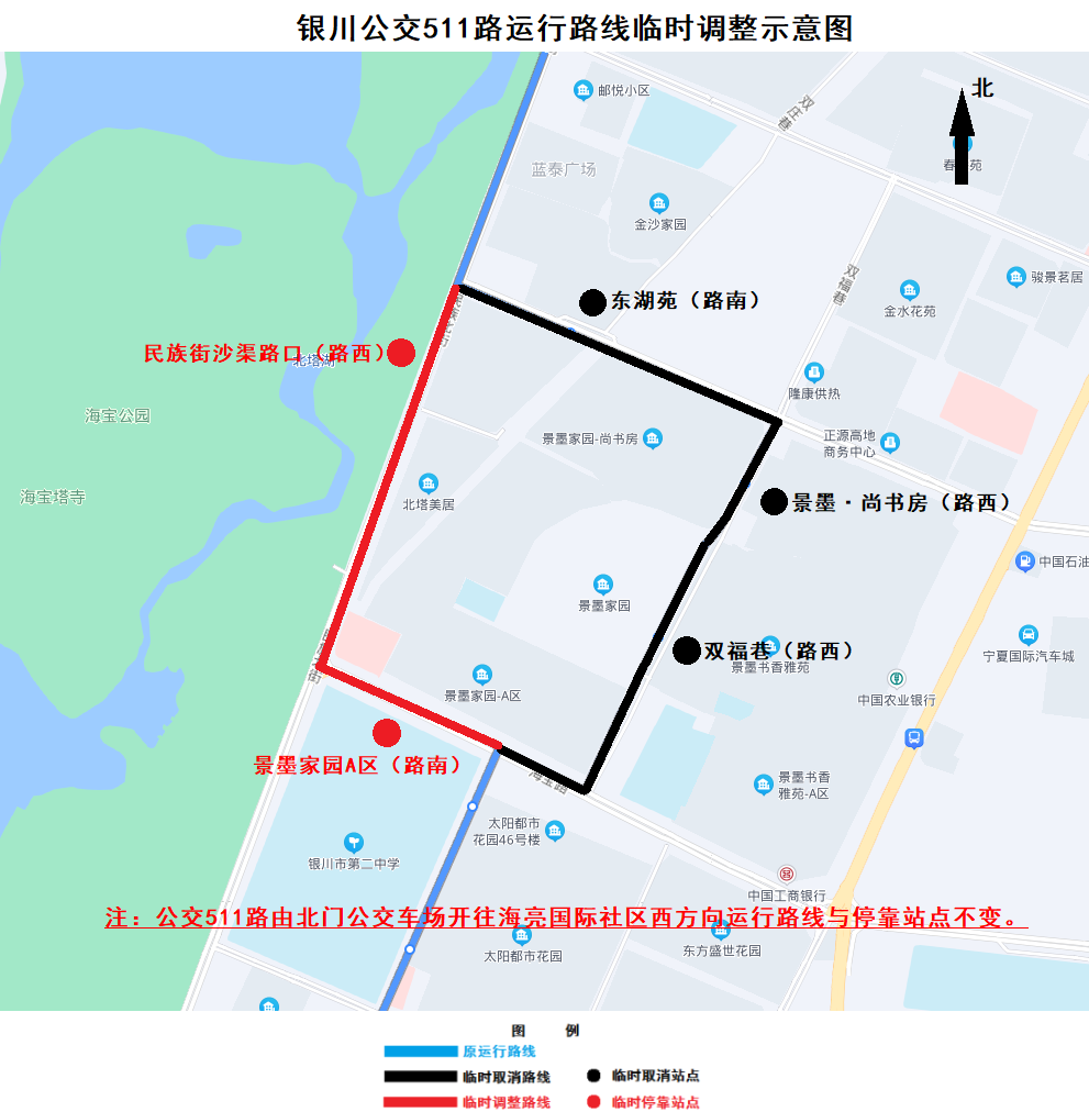 临时取消3站:景墨·尚书房(路西)、双福巷(路西)、兴庆区十八小学(路南)