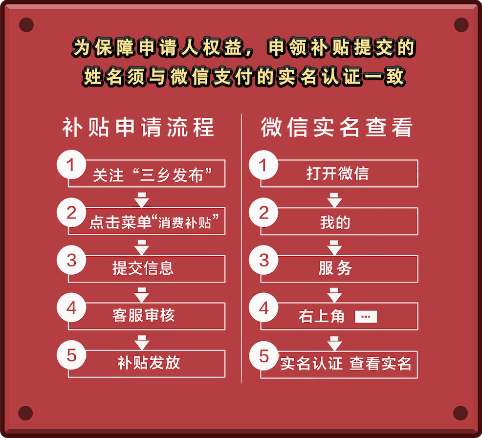 3.申领补贴提交的姓名须与微信支付的实名认证一致。