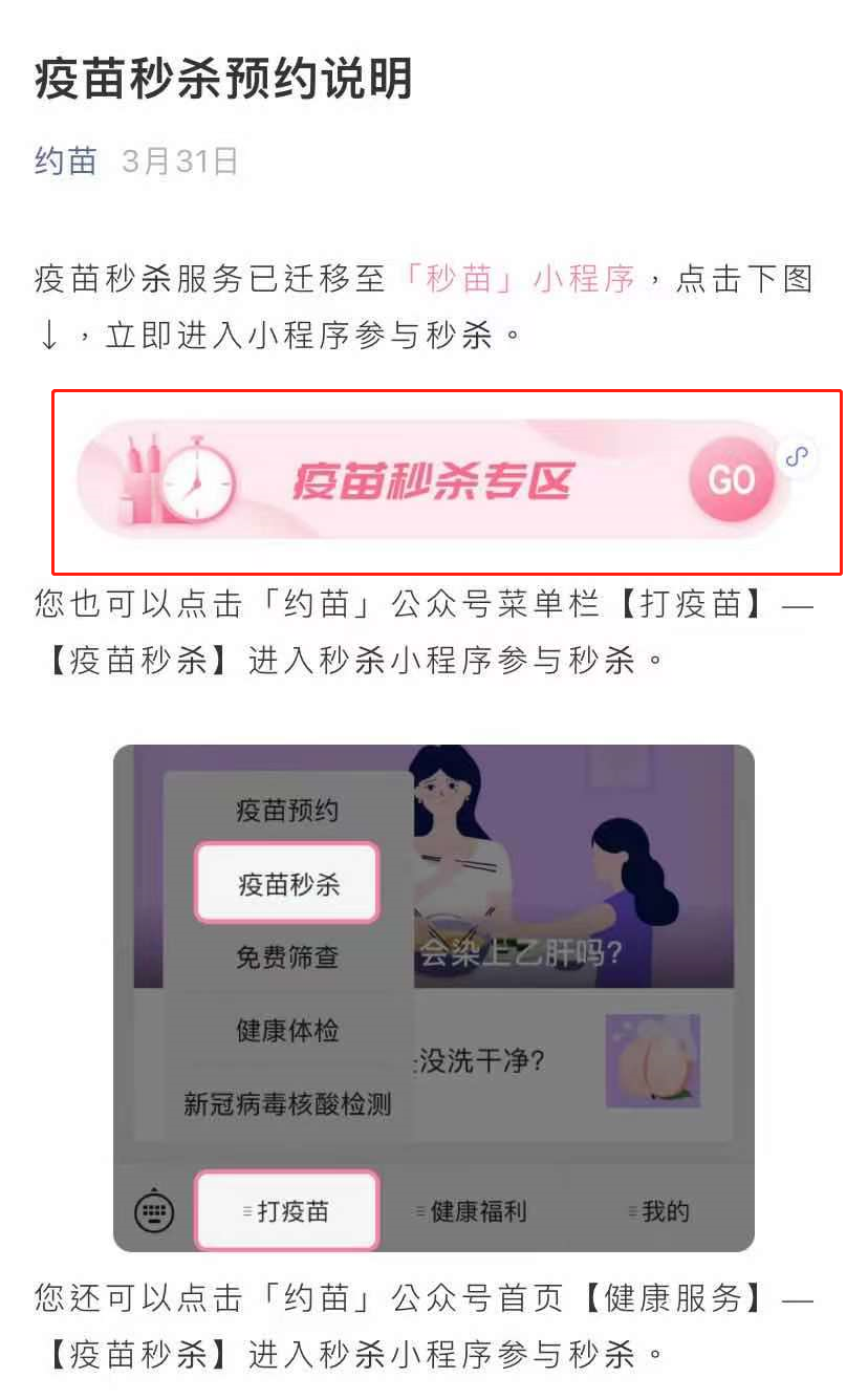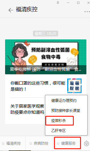2、点击菜单栏【健康服务】(选择“疫苗秒杀”)