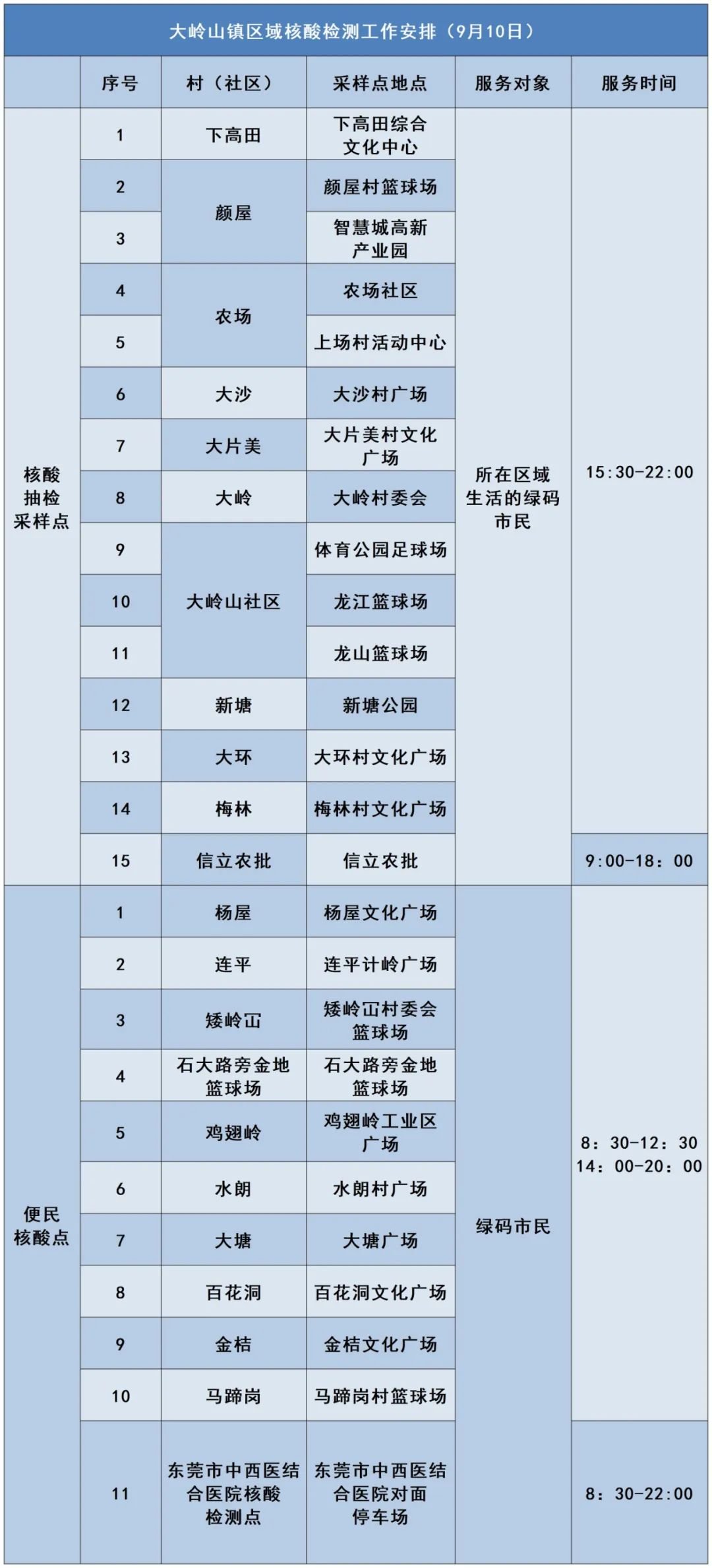 东莞大岭山镇9月10日区域核酸检测工作安排