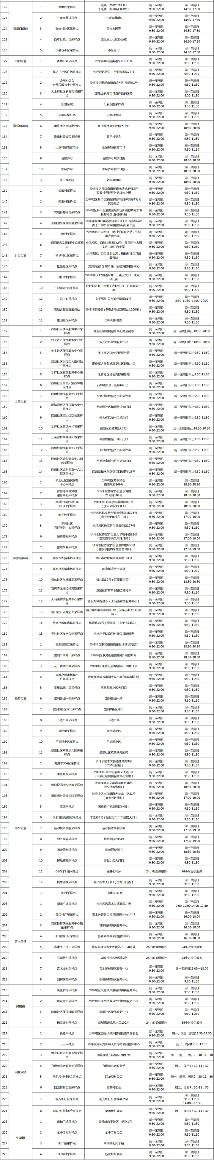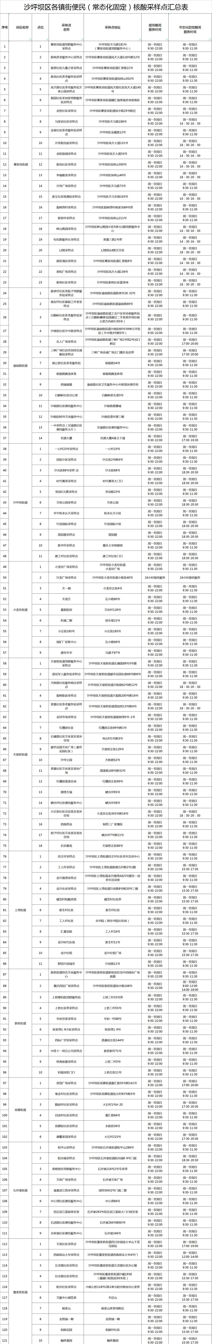 重庆沙坪坝区各镇街常态化固定核酸采样点安排(9月)