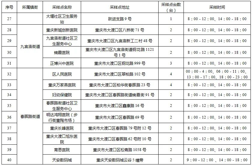 重庆大渡口区常态化核酸检测采样点安排(9月)