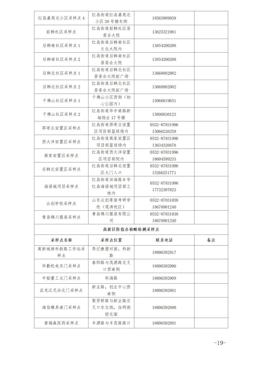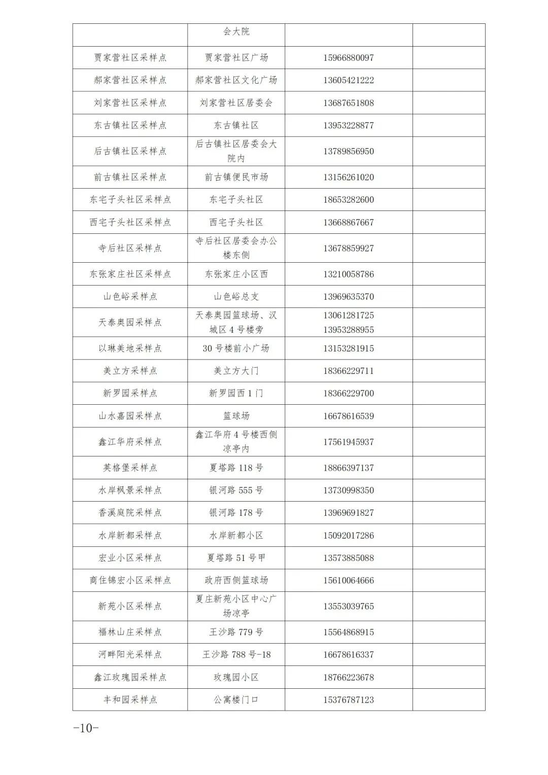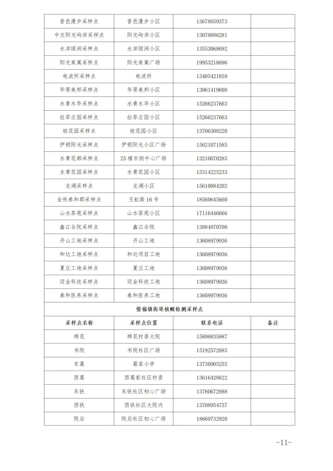 各街道、高新区防指办、高新便民服务中心就近设置采样点(采样点信息附后),请关注区及各街道、高新区防指办、高新便民服务中心发布的信息。